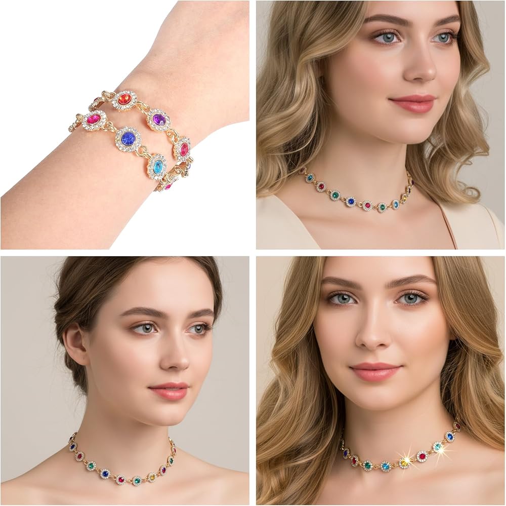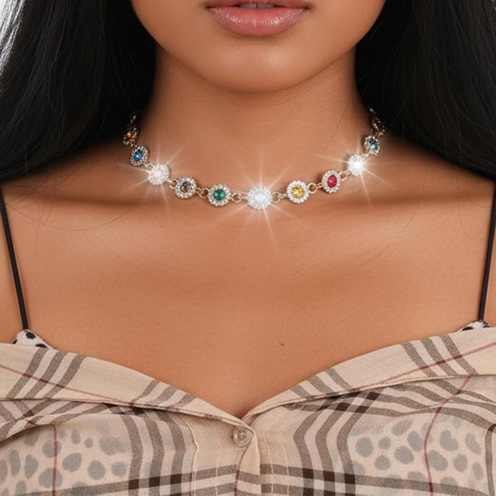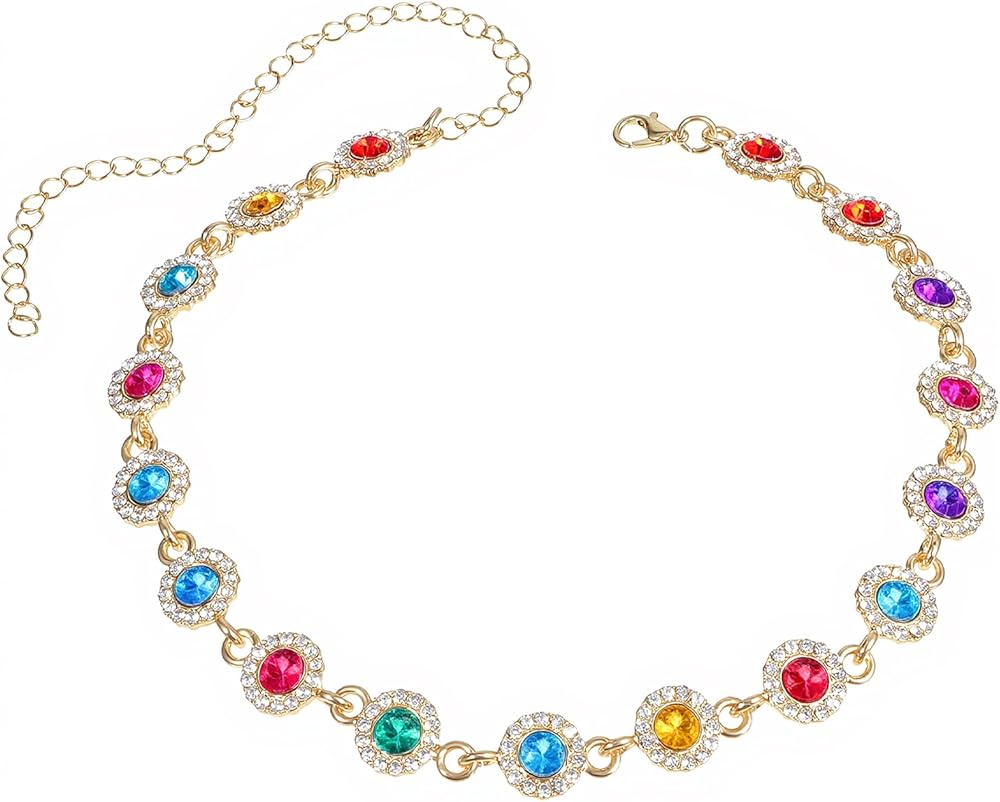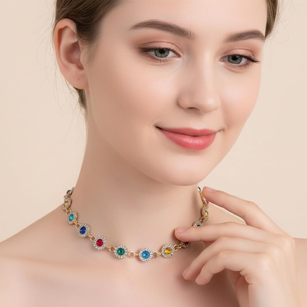 This eye-catching rainbow choker is part of our colorful jewelry for women line, offering stunning rainbow jewelry pieces including rhinestone choker necklaces for women that serve as the perfect rainbow necklace for women seeking multicolor necklaces for women elegance.