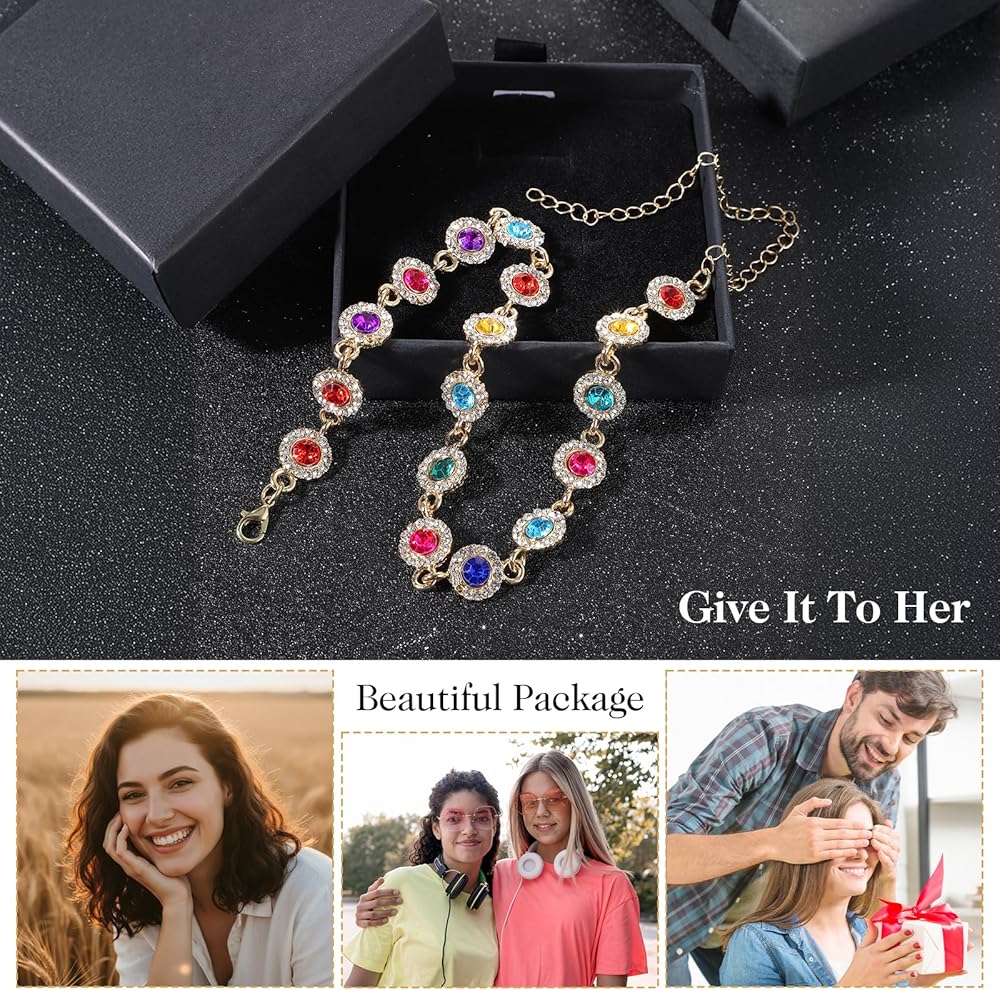 This exquisite rainbow necklace features premium stone necklaces for women craftsmanship with a durable alloy base and sparkly rhinestones, offering a colorful necklace for women that maintains its brilliance without fading over time.