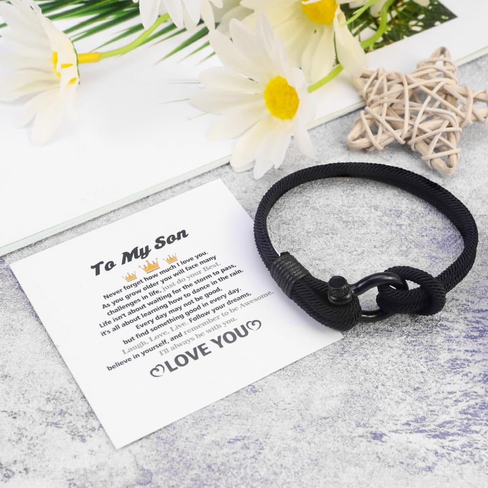 Unique Design: The interface of the double rope is tied with a thin rope to symbolize a closer connection. Gifts for men, birthday gifts for men, birthday gifts, graduation gifts, gifts to my son, son gifts from dad, son gifts from mom, gift for son, inspirational gifts for men, son gifts, mens gifts for birthday, sons bracelet from mom, to my son gifts, bracelets teenager and birthday gifts for son bracelet.