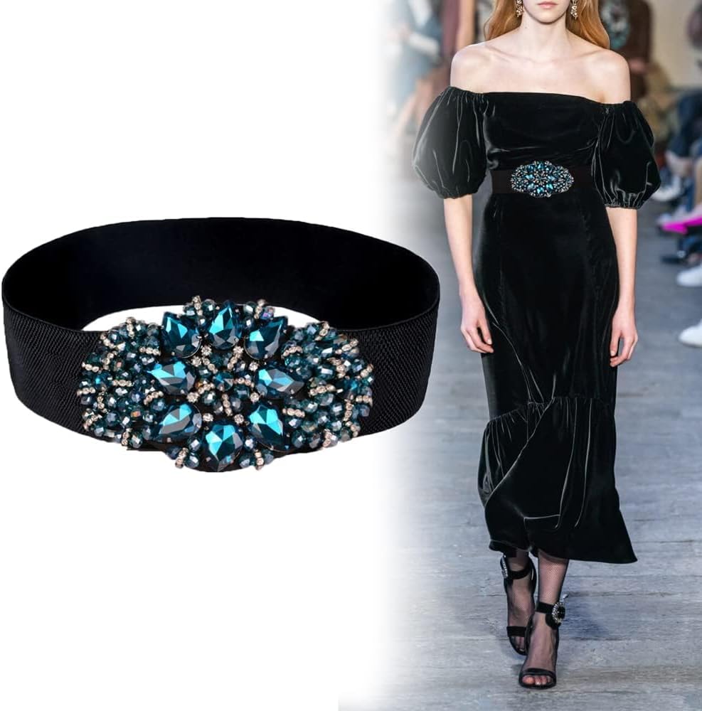 إبزيم من حجر الراين والمطرز - حزام Dorchid اللامع مزين بأحجار الراين الكبيرة والخرز أمام الإبزيم السميك. 2 زر كبس في الخلف، سهل الارتداء والخلع. أنظمة الألوان المتشابهة ولكن تصميم المواد المختلفة تجعل هذا الحزام أنيقًا ورقيقًا.