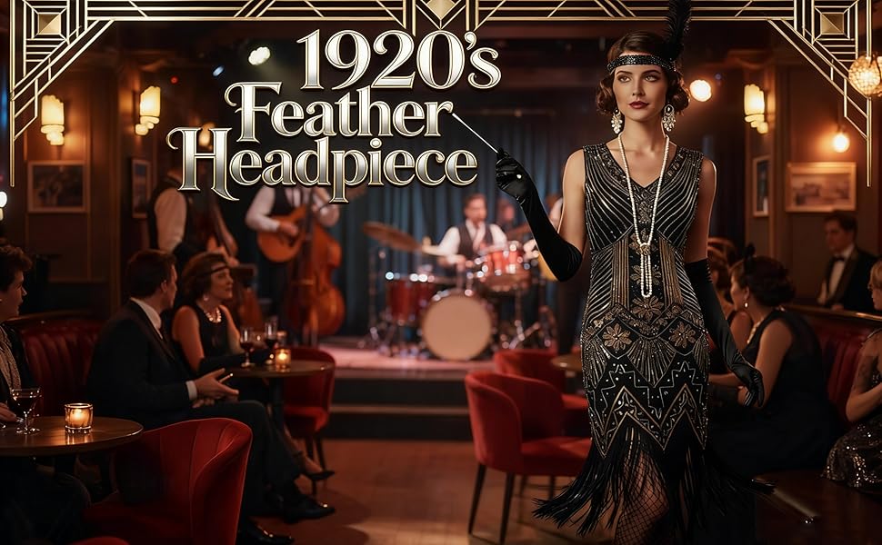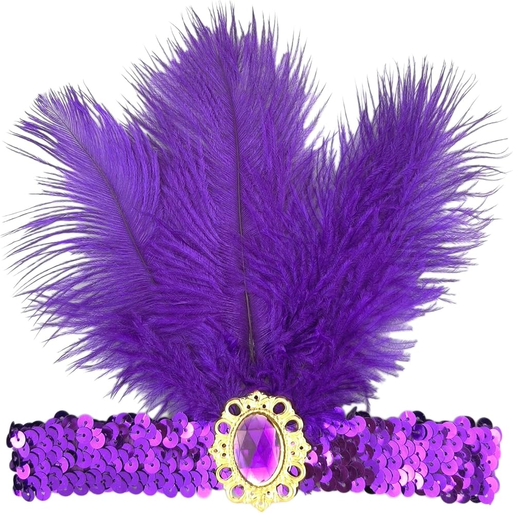 Showgirl أغطية الرأس ريشة خوذة 1920s فلابر عصابات الكرنفال حزب أغطية الرأس اكسسوارات للنساء الفتيات in Kuwait