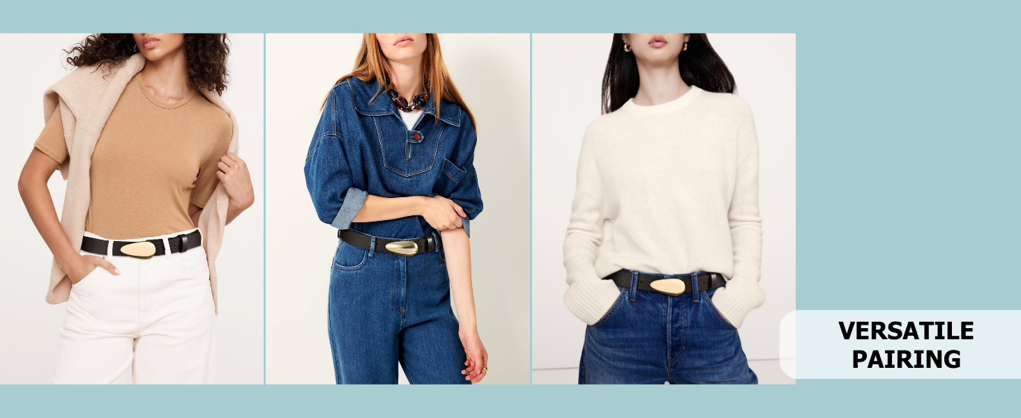 تصميم متعدد الاستخدامات: سواء كان ملابس رسمية أو كاجوال، فإن هذا الحزام يرفع من أناقتك على الفور. مما يجعلها ضرورية بين أحزمة النساء للسراويل والجينز والفساتين والتنانير والمعاطف