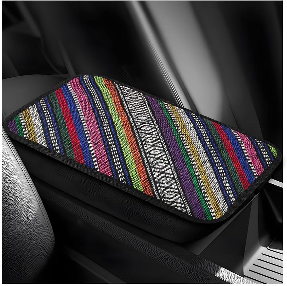 غطاء وحدة التحكم المركزية للسيارة، 12.4 بوصة × 7.5 بوصة، وسادة صندوق مسند الذراع التلقائي بديكور بوهو مع أشرطة مرنة، غطاء مسند ذراع واقي لوحدة التحكم الوسطى يسمح بالتهوية لدعم مريح (ملون)