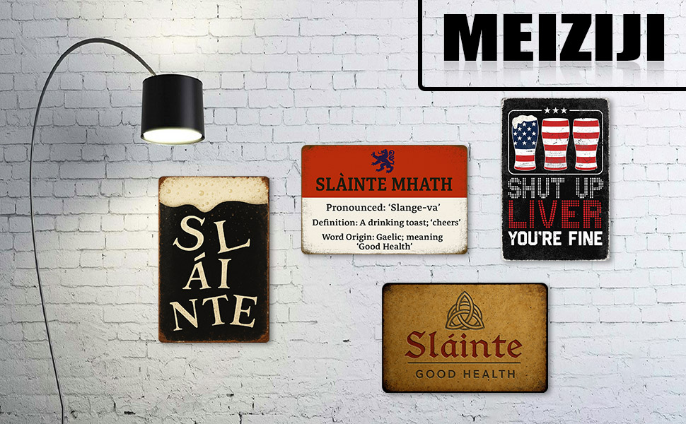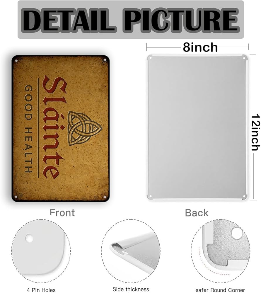 المواد: مصنوعة من معدن القصدير المتين عالي الجودة مع لمسة نهائية صفراء معتقة، تجمع هذه اللافتة المسطحة بين السحر الريفي والقوة طويلة الأمد - مثالية لديكور الحائط المستوحى من أيرلندا. يرجى ملاحظة: هذه علامة معدنية مسطحة ثنائية الأبعاد، وليست لوحة منقوشة ثلاثية الأبعاد