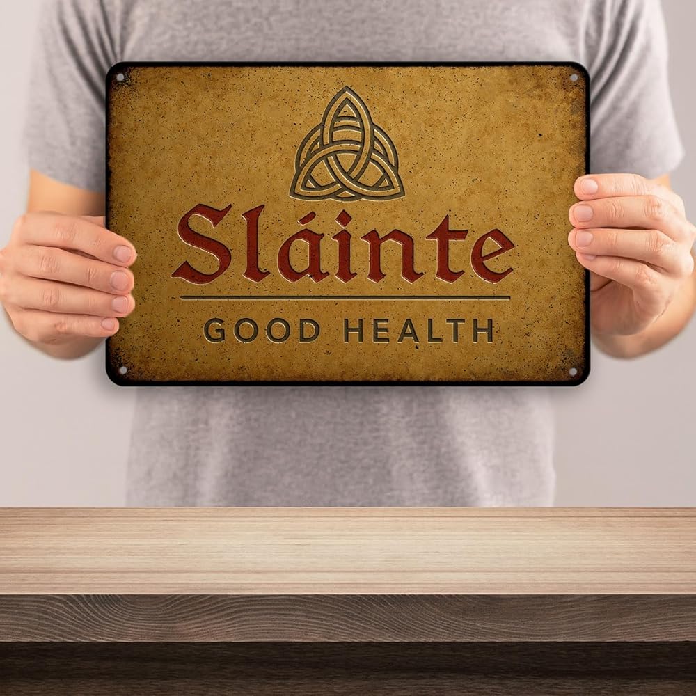 علامة Sláinte Good Health مقاس 8x12 بوصة - ديكور جدار أيرلندي عتيق مع فن رمز ريفي - علامة Slainte للبار أو الحانة أو المطبخ - هدية أيرلندية لتزيين كهف المنزل أو الرجل