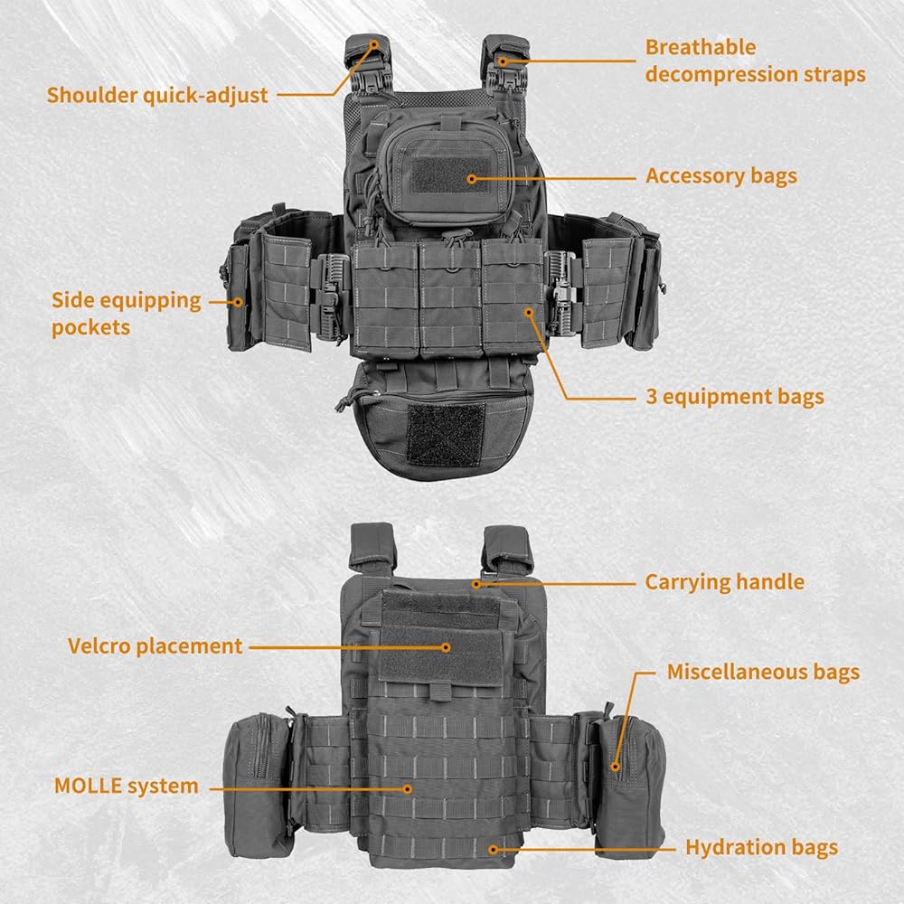 MOLLE System for Customization: The MOLLE system allows for easy attachment of pouches and accessories, offering flexibility to tailor the vest for your specific needs.