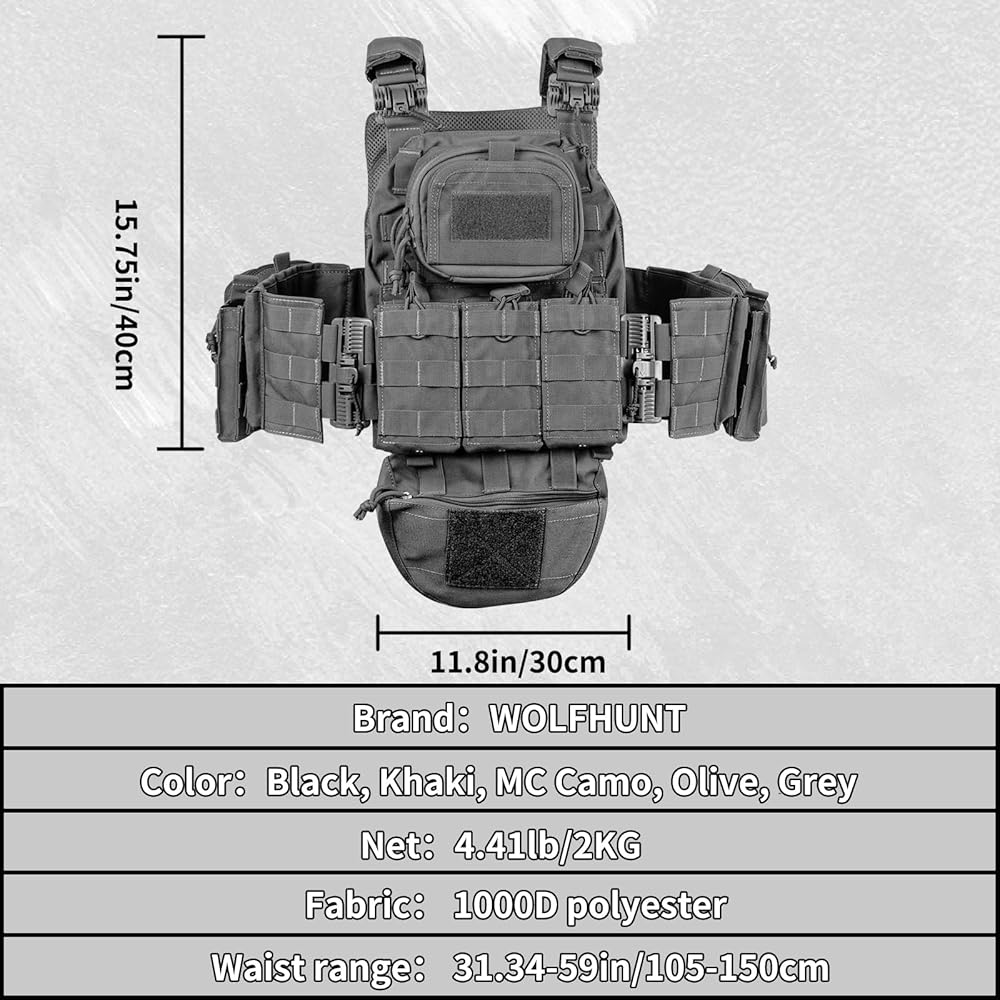 WOLFHUNT Tactical Vest for Men Gaming Quick Release, Grey 2