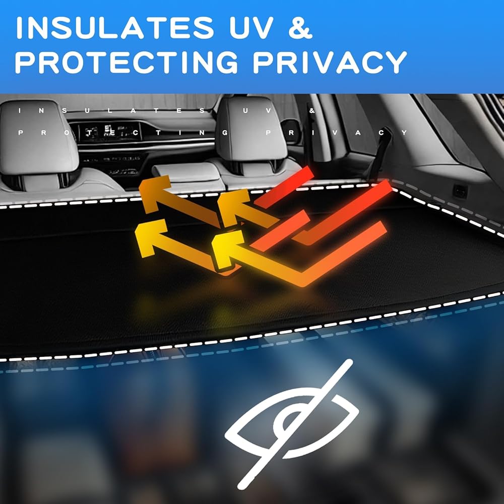 الوظيفة: يحمي غطاء الحمولة هذا مقصورة الحمولة الخلفية، ويحمي متعلقاتك الشخصية والقيمة المخزنة هناك من أعين المتطفلين. بالإضافة إلى ذلك، يحمي ظل الأمان هذا الأشياء الثمينة الخاصة بك من الأشعة فوق البنفسجية الضارة مع توفير مساحة تخزين إضافية.
