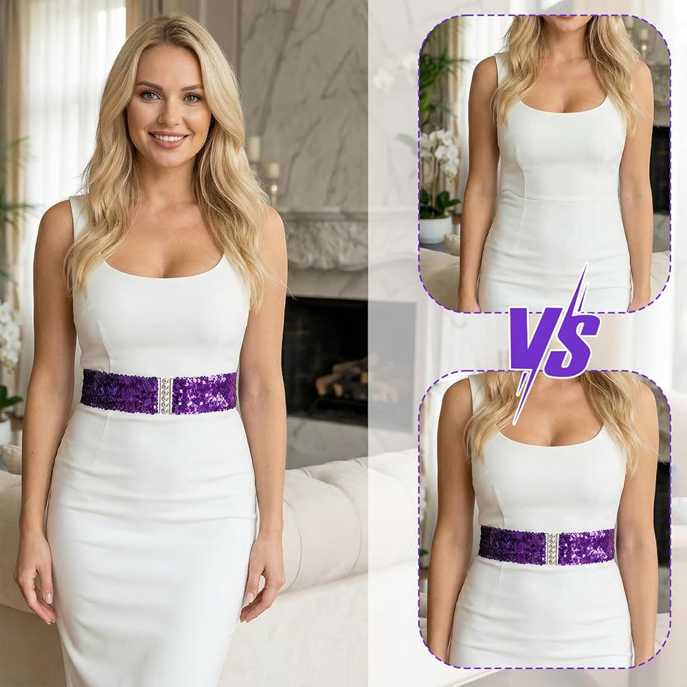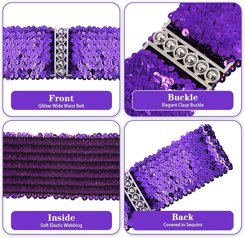 【Comfortable Elastic Waistband】 Made with high-quality elastic material, this sequin belt comfortably stretches to fit waist sizes from 20 to 32 inches while maintaining purple belts for women shape and providing gentle support without feeling restrictive during extended wear