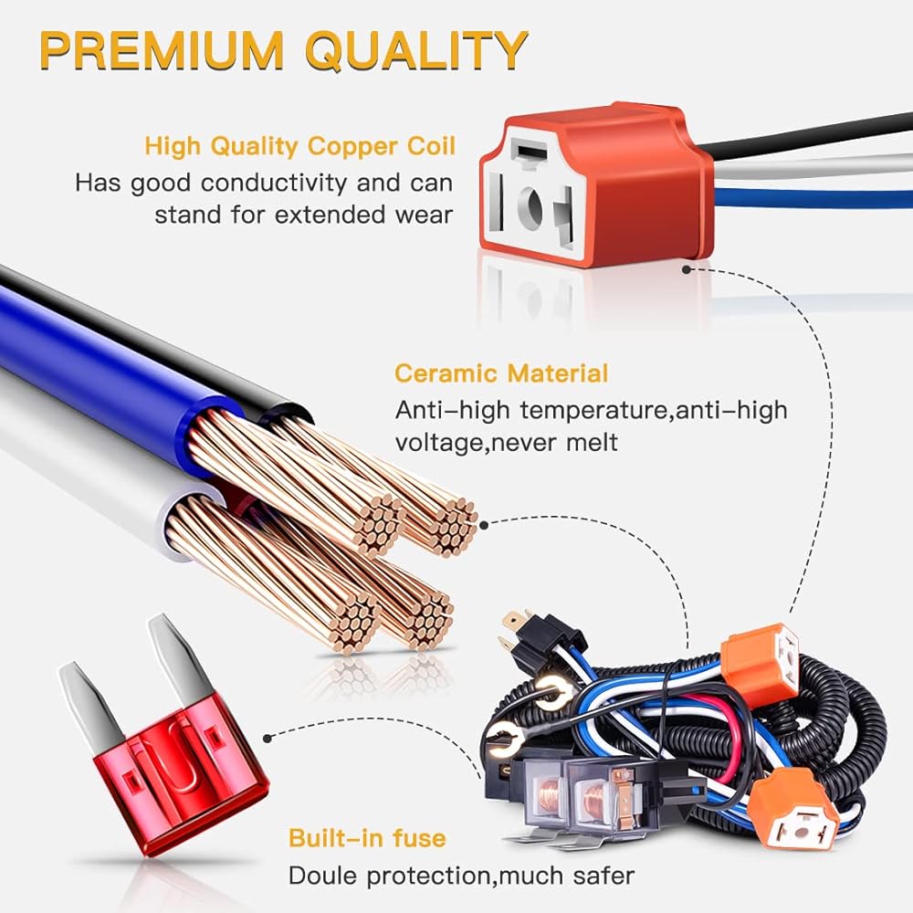 تشمل العبوة: 1 × مجموعة أدوات أسلاك، مع توفير خدمة عملاء مرضية لمدة عام. إذا كان هناك أي أسئلة أو سوء فهم بشأن H4 Relay Wiring، فلا تتردد في الاتصال بنا. وسوف نقدم أفضل الخدمات والمنتجات لعملائنا. ملاحظة هامة: إذا لم يكن دبوس المقبس الخاص بك قياسيًا، فستكون هناك حاجة إلى مجموعة أسلاك محول H4.