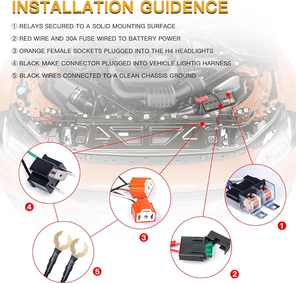 سرج تحويل Plug-n-play، سهل الاستخدام. مرحل المصباح الأمامي H4 9003 المثالي لـ H6054 H5054 H6054LL 6014 6052 6053 استبدال المصابيح الأمامية LED، يتطابق تمامًا مع المصابيح الأمامية 7X6 مثل Toyota وJeep Pickup وTacoma وSubaru وMitsubishi أو سوزوكي 5X7 LED.