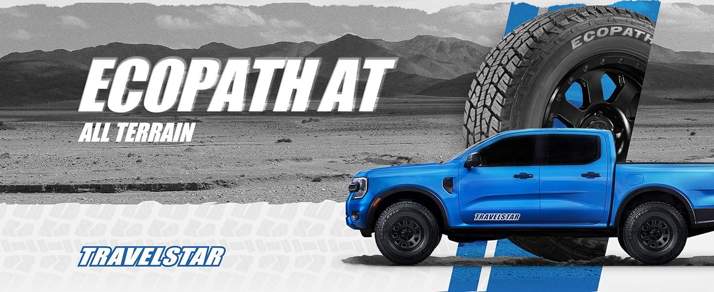 4 حزم: إطار نصف قطري Travelstar Ecopath AT 275/55R20 113T M+S لجميع التضاريس لسيارات الدفع الرباعي - يشمل ضمان مخاطر الطريق لمدة 3 سنوات (الإطار فقط)- -275/55/20 UTQG 520AB