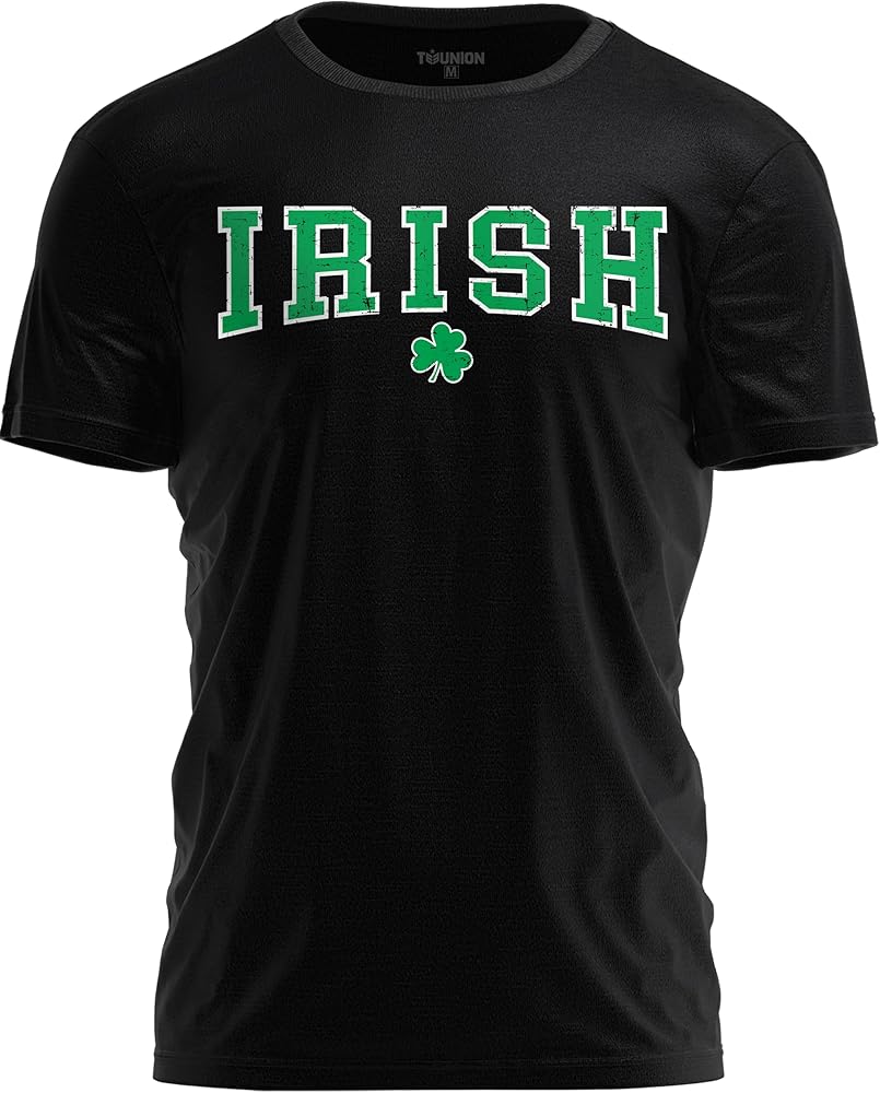 شامروك + تصميم الحروف الأيرلندية: يتميز برسم شامروك نظيف مع حروف أيرلندية للحصول على مظهر كلاسيكي لعيد القديس باتريك يبرز دون أن يكون مزحة أو رسالة جديدة. رائع لأي شخص يريد قميصًا بسيطًا ذو طابع أيرلندي.