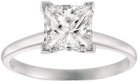 14K White Gold Solitaire Diamond Engagement Ring Princess Cut ( H Color VVS2 Clarity 0.53 ctw)