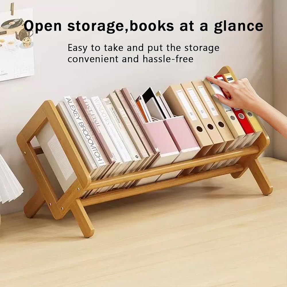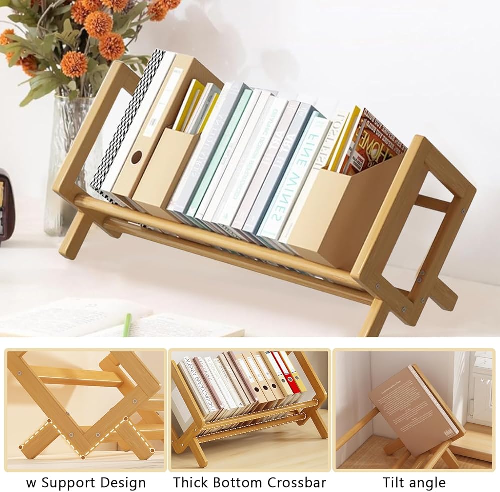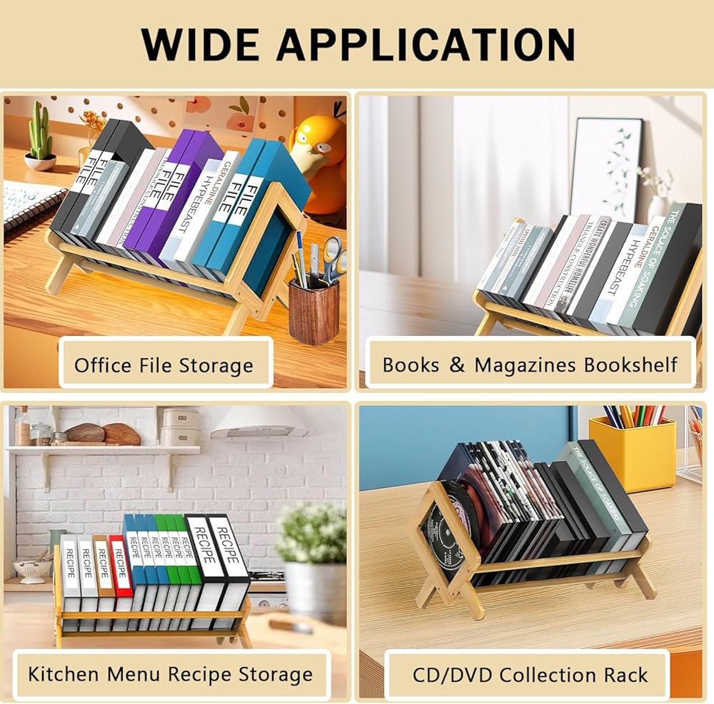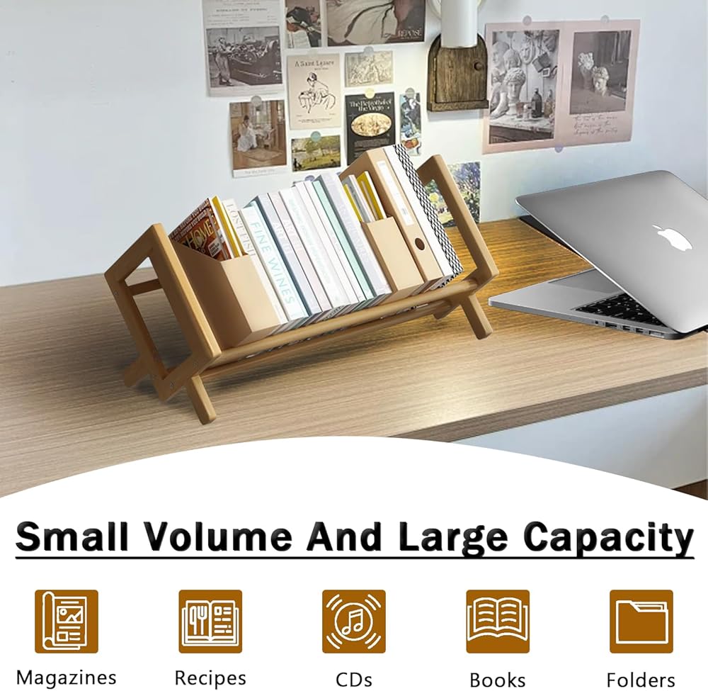 رف الكتب المكتبي من الخيزران منظم تخزين الكتب الكبيرة رفوف حامل المجلات للمنزل والمكتب وغرفة النوم وخزانة الكتب المائلة للكتب والأقراص المضغوطة والملفات وعرض المجلات هدية العودة إلى المدرسة