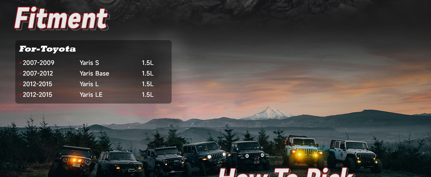 • 【الإعداد】لـ/تويوتا ياريس S 2007-2009 1.5L؛ ياريس بيس 2007-2012 1.5L; يارس إل إي 2012-2015 1.5 لتر