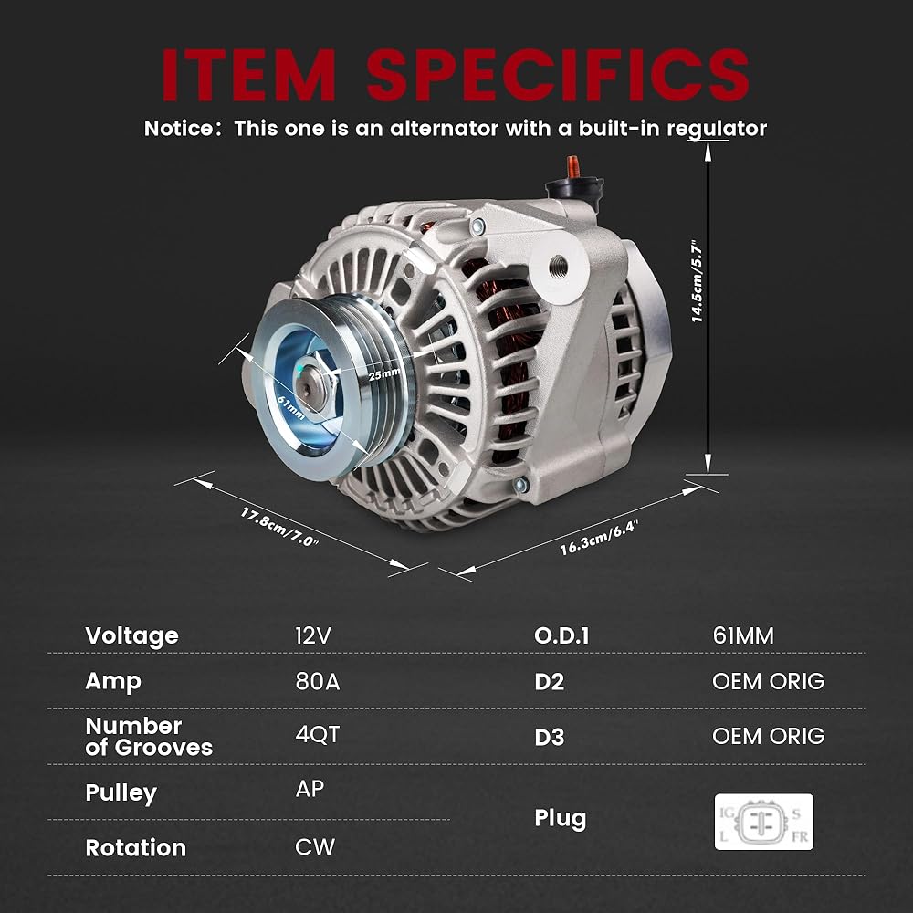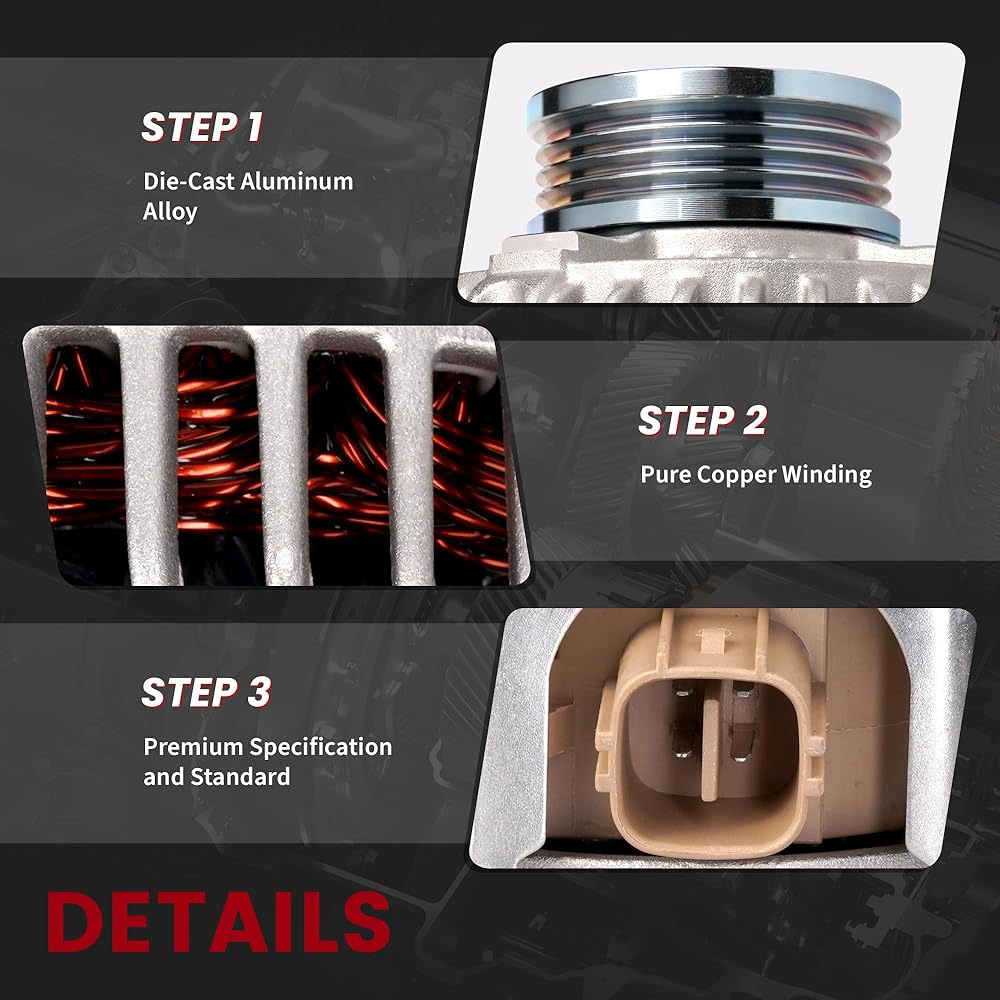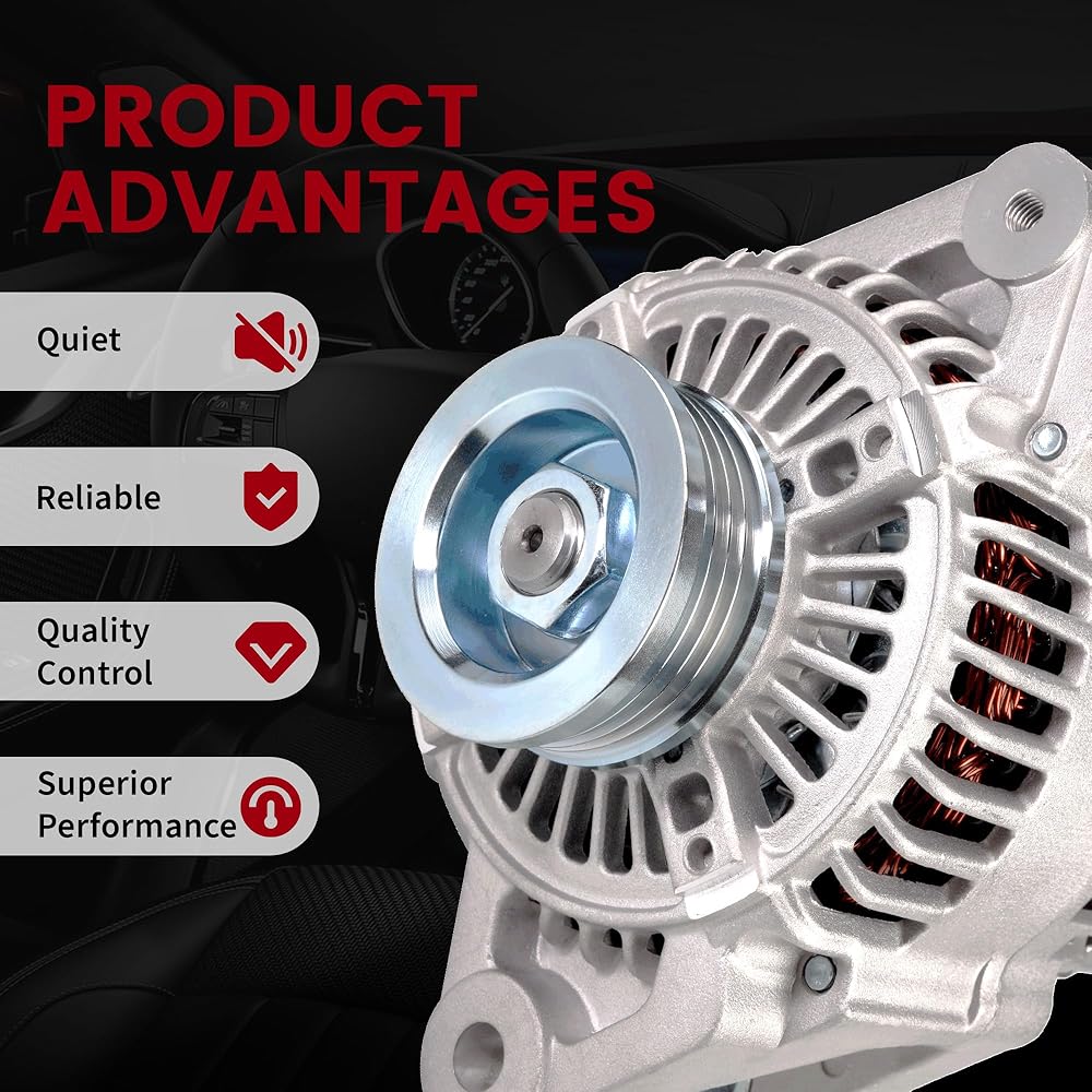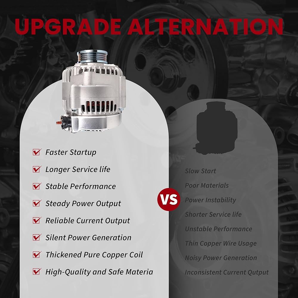 • [أداء فائق] يستخدم المولد عالي الإخراج تقنية متقدمة لتوفير خرج كهربائي أكثر قوة من المولدات القياسية، مما يضمن أنه يلبي المتطلبات الكهربائية العالية لسيارتك.