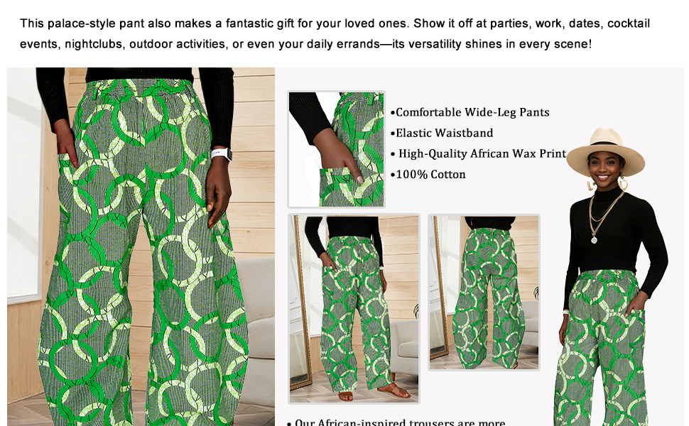 • كلاسيكي وفضفاض: سراويل أنقرة الطويلة التقليدية الأفريقية الرسمية للسيدات تجعلك تبدو بسيطًا. تصميم البنطلون ملائم وألوان غنية وجيبين.