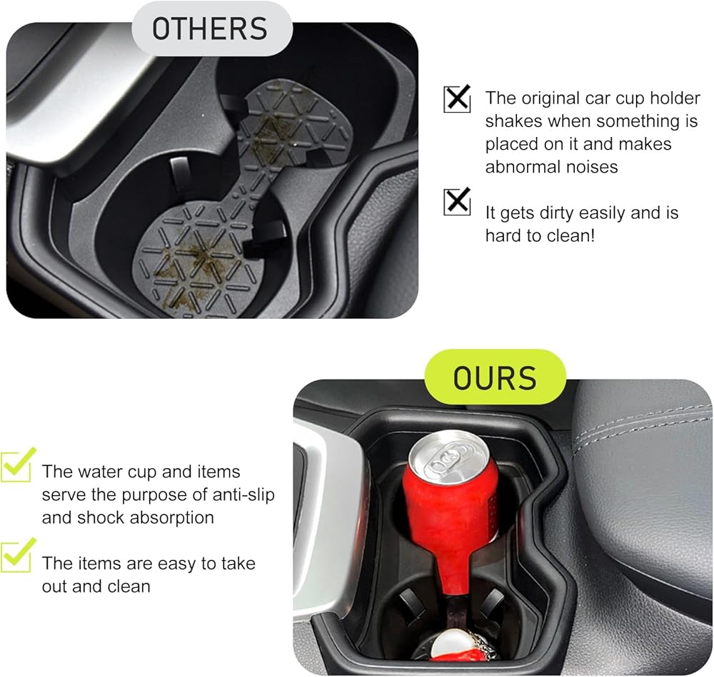 Anti-Slip Shockproof Design: Solves OEM cup holder's wobble, rattle, and hard-to-clean issues. After installation, it secures cups/items with anti-slip shockproof design, making access convenient and cleaning a breeze.