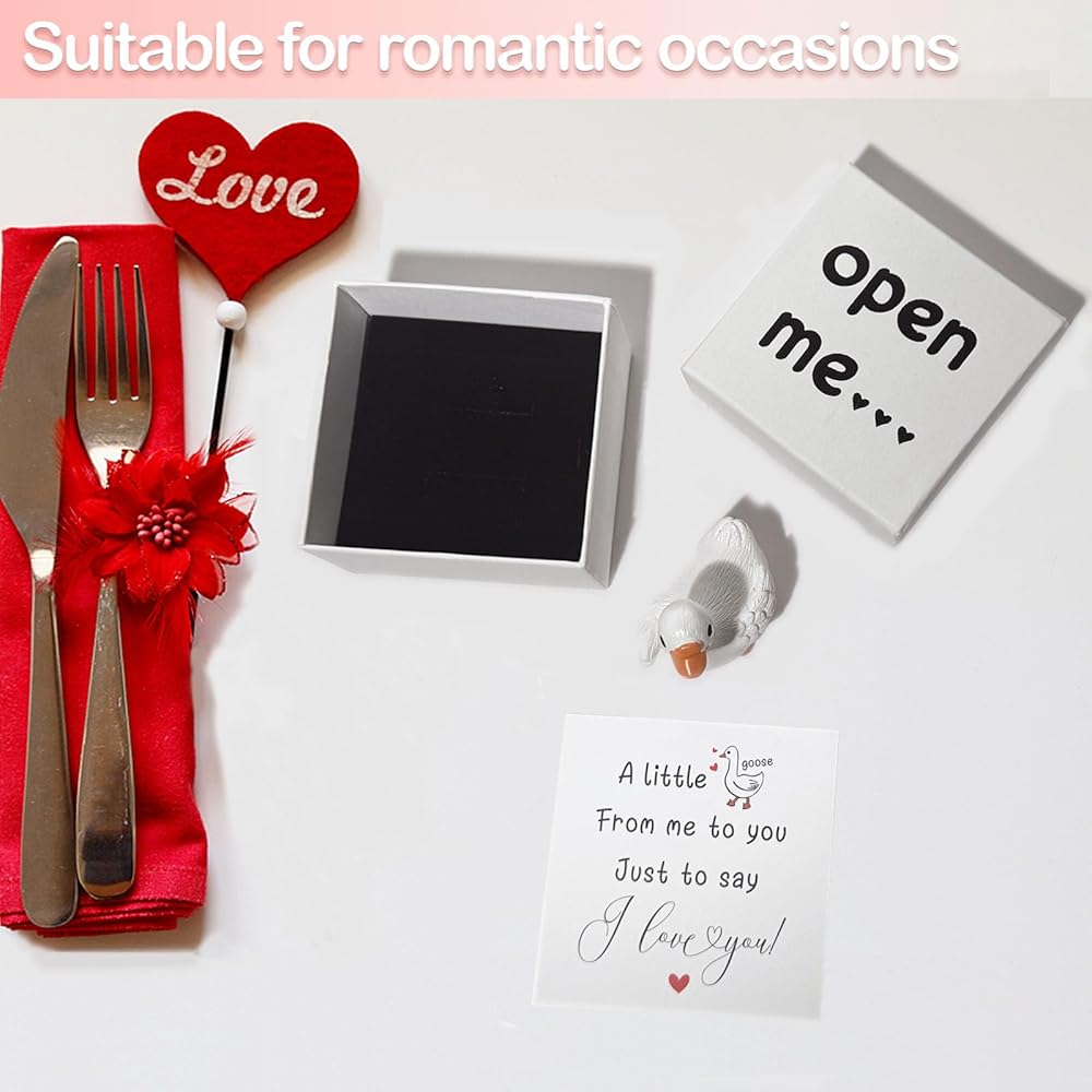• تصميم فريد - معبأ بشكل جميل، حجم الصندوق 2.95 بوصة × 2.95 بوصة. حجم الإوزة البيضاء الصغيرة هو 1.26 بوصة × 1.1 بوصة. البطاقة مطبوعة بالآيات. إنها زخرفة وطريقة مؤثرة للتعبير عن الحب.