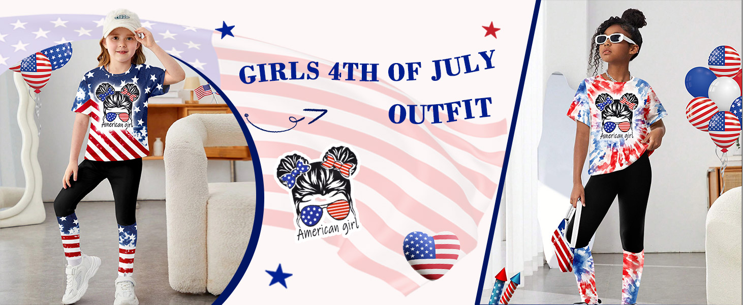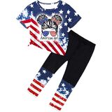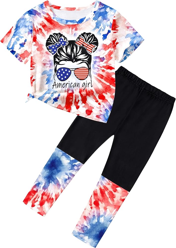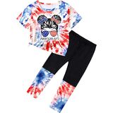 ملابس DONWEN للفتيات في الرابع من يوليو ملابس صبغ التعادل 2 قطعة بدلة رياضية في الرابع من يوليو أطقم جرافيك بأكمام قصيرة وسراويل طويلة in Kuwait