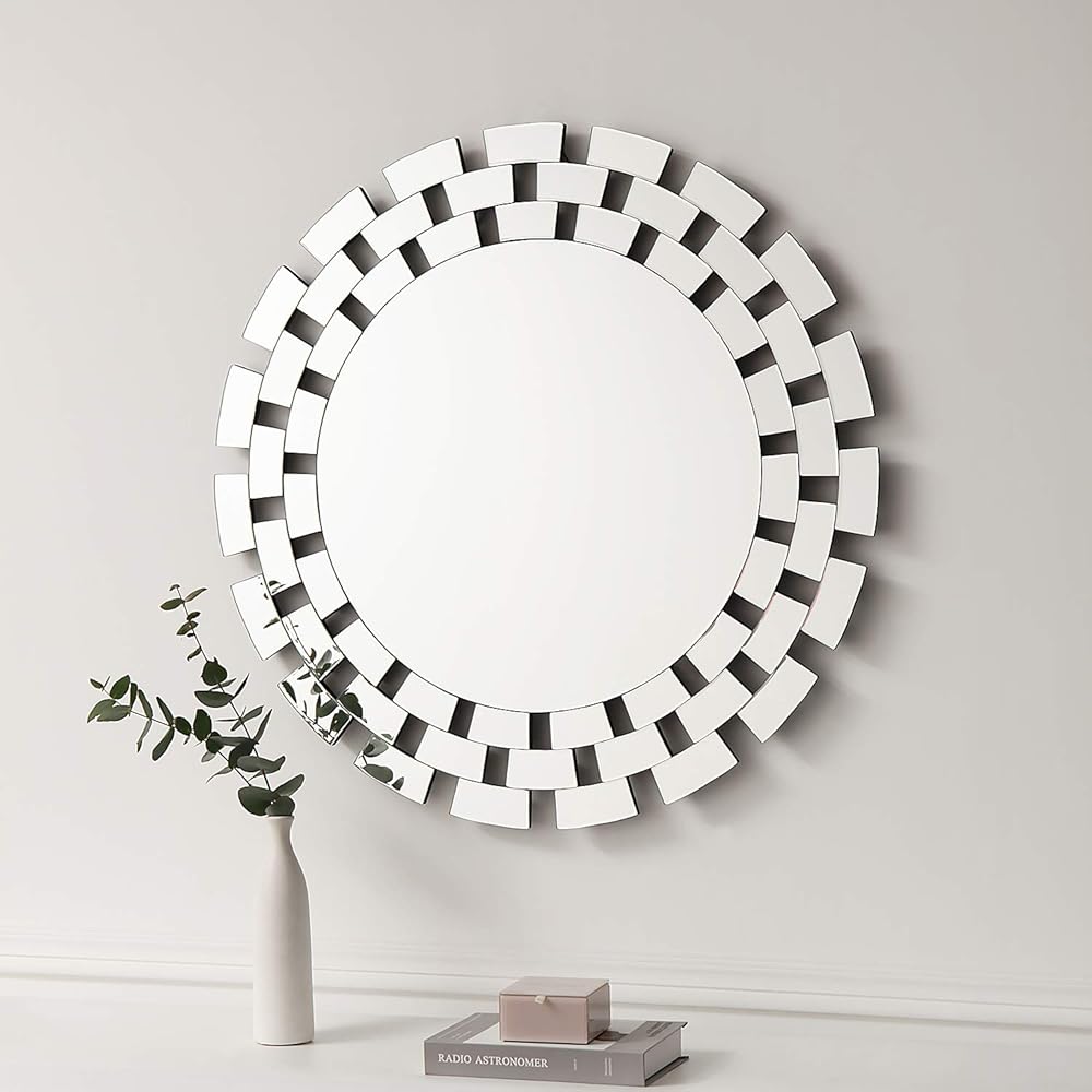 [تصميم فني فريد] يتميز بإطار عاكس مستوحى من العتاد/عباد الشمس يجمع بين الديكور والفن الحديث، مما يضيف لمسة أنيقة إلى مساحتك.