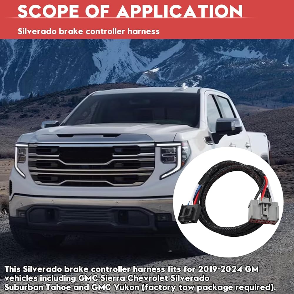 Core Compatibility: Direct plug-play trailer brake controller wiring harness for 2019-2024 Chevy Silverado/GMC Sierra/Tahoe with factory tow package. Excludes CURT controllers.