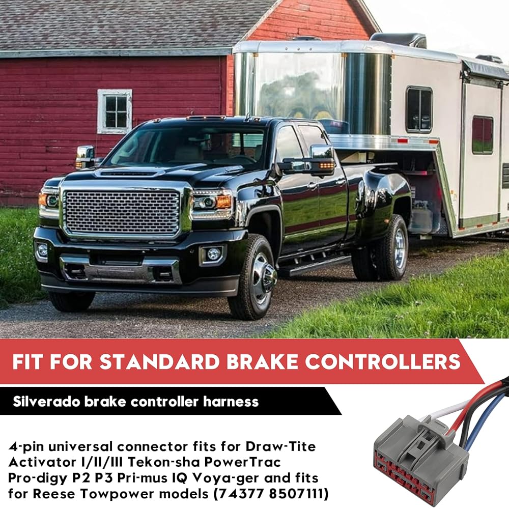 Multi-Brand Controller Integration: Features universal 4-pin connector fitting for Tekonsha wiring harness (Prodigy/P3/Primus IQ) and Reese brake control wiring harness systems. Functions as essential brake controller wiring adapter.