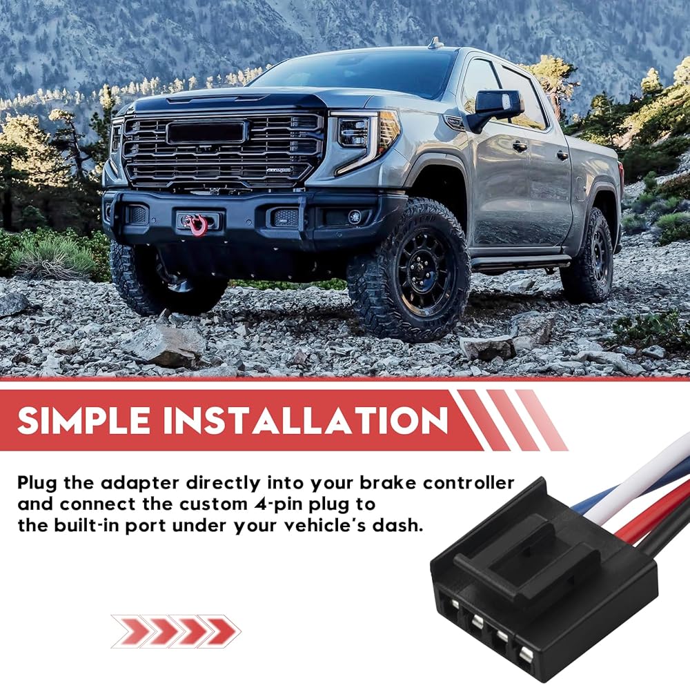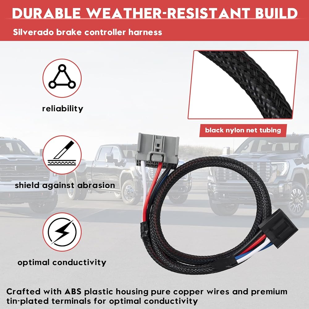 Core Compatibility: Direct plug-play trailer brake controller wiring harness for 2019-2024 Chevy Silverado/GMC Sierra/Tahoe with factory tow package. Excludes CURT controllers. Expanded Vehicle Support: Compatible with Dodge RAM trucks using adapters (sold separately). Functions as brake controller for Dodge RAM 1500 with wiring harness solution when paired with model-specific connectors. Multi-Brand Controller Integration: Features universal 4-pin connector fitting for Tekonsha wiring harness (Prodigy/P3/Primus IQ) and Reese brake control wiring harness systems. Functions as essential brake controller wiring adapter. Ruggedized Construction: Military-spec ABS housing with pure copper conductors and crush-resistant nylon sleeving. Engineered to outperform standard trailer brake controller harness in vibration/weather resistance. Complete Brake Control Kit: This 31-inch brake controller kit includes pre-terminated connectors for simplified installation. Solves wiring errors in Silverado trailer brake controller or Dodge RAM electric brake controller setups.