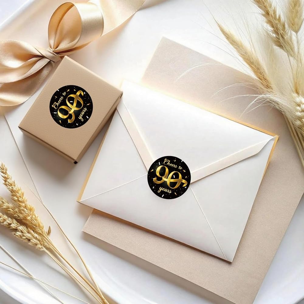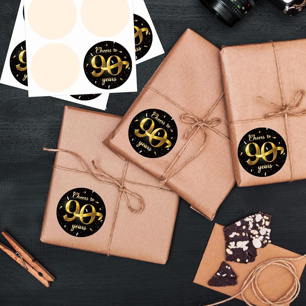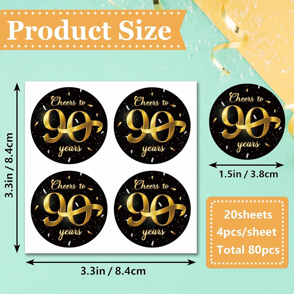90th Birthday Stickers: Package includes 80 pcs black gold birthday stickers (20 sheets of paper, each sheet has 4 pcs). The sufficient quantity can meet your different decorative demands. Great for party favors, envelope seals, gift wraps