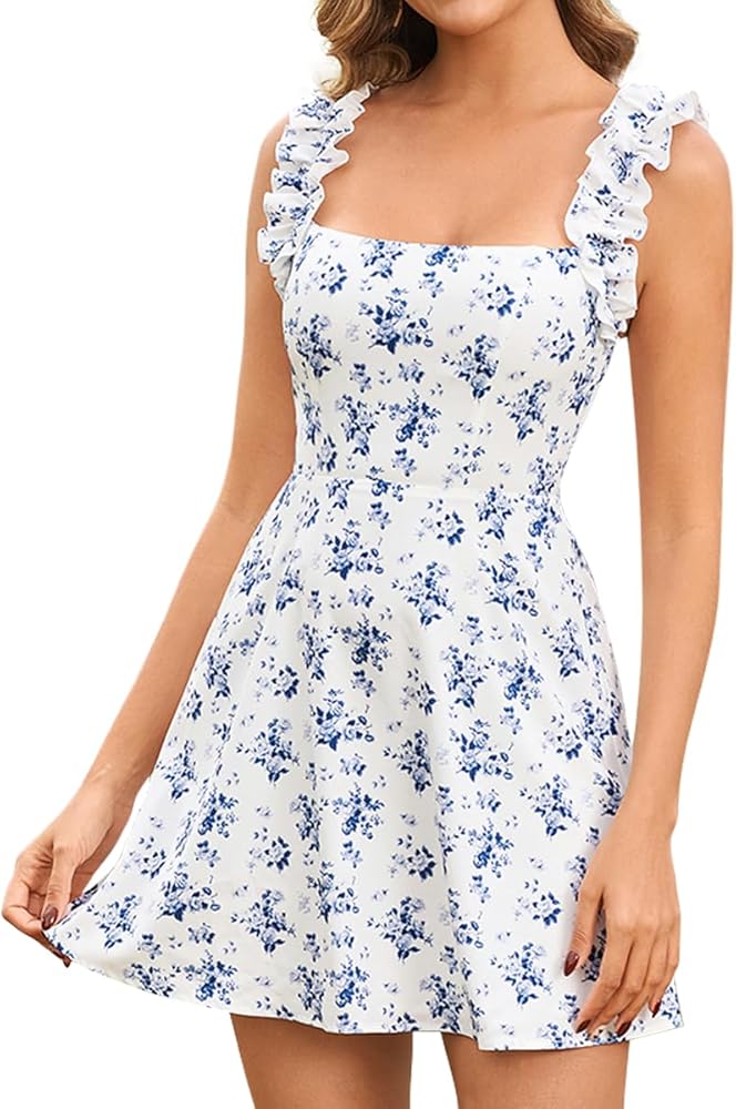 • تصميم ملفت للنظر: فساتين كاجوال للنساء، فستان قصير صيفي، فستان مكشكش بدون أكمام للنساء، فساتين خط للنساء 2026، حزام قابل للتعديل ليناسب أشكال الجسم المختلفة، رقبة مربعة من هذا الفستان النسائي يظهر خط رقبتك ويوفر مظهرًا أنيقًا ومفتوحًا