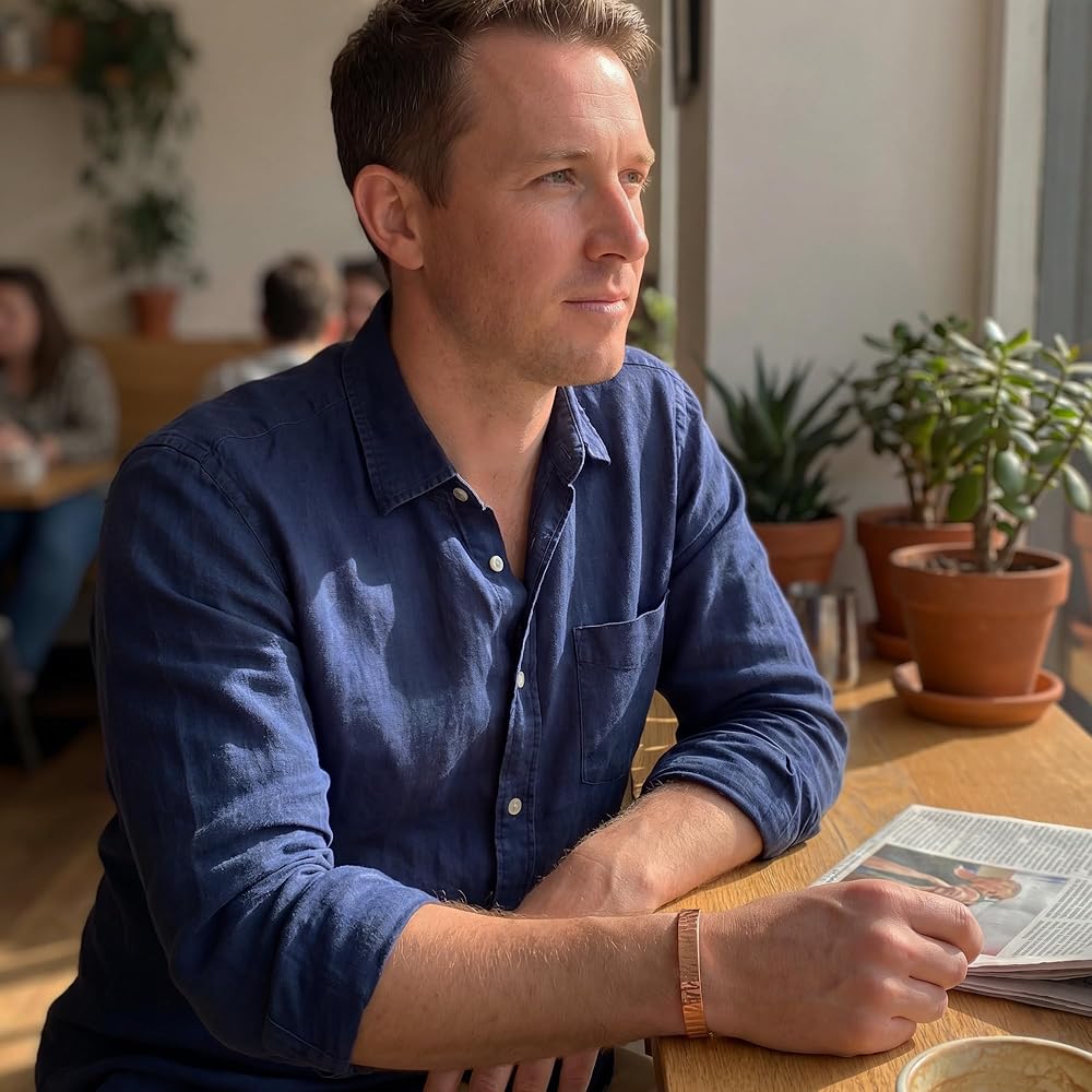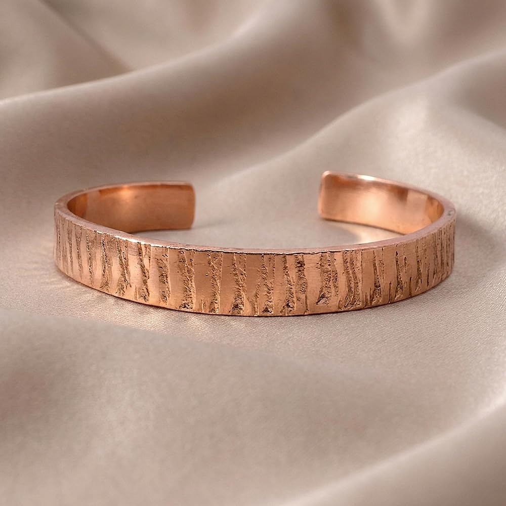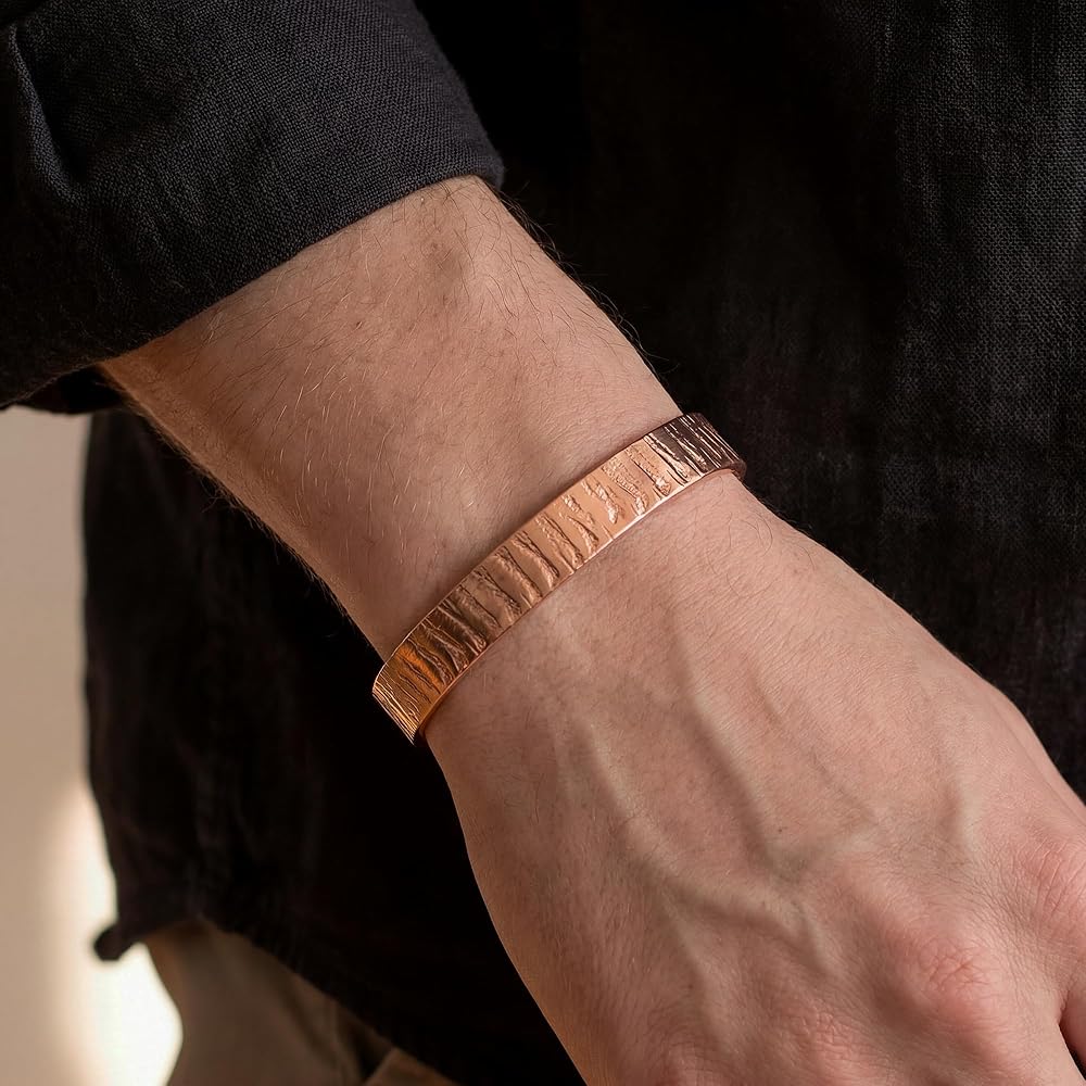 Crafted with super heavy 3.25 MM thick solid copper, this bracelet is durable and adjustable. Although it may require extra effort to open, the secure fit ensures that it stays in place. The edges are smooth and will not scratch your wrist, making it a great choice for everyday wear. A solid piece of artistic copper.