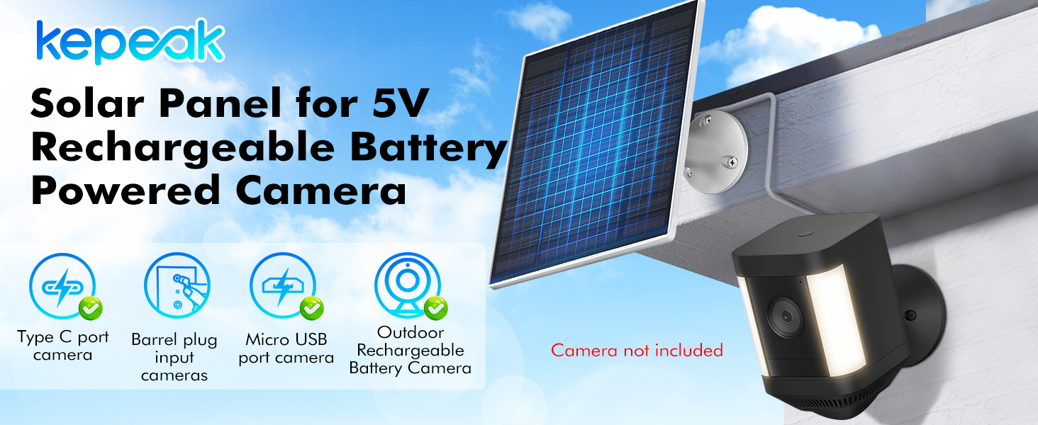 ❗❗❗هام: كاميرا متوافقة قابلة لإعادة الشحن في الهواء الطلق: تعمل اللوحة الشمسية الحلقية الخاصة بنا مع بطارية Cam Stick Up Cam Pro للأماكن الخارجية، وSpotlight Cam Plus، وSpotlight Cam Pro باستخدام موصل USB-C المدمج وموصل التوصيل الأسطواني. غير متوافق مع الكاميرات التي لا تحتوي على بطاريات.