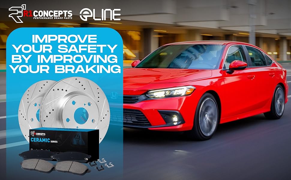 • Brake Kit: Includes (2) R1 Concepts eLINE Front Front Drilled Slotted Brake Rotors with (4) Ceramic Brake Pads for improved braking performance