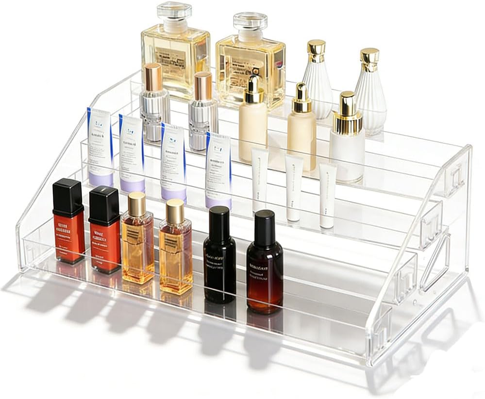 This clear acrylic stand is a fantastic organizer for small collectibles, such as figurines, or even beauty products.