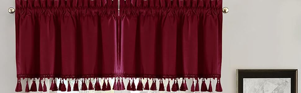ستارة قصيرة مستقيمة مخملية ثقيلة الوزن من Royal Tradition، عنابي (52x19) ستارة نافذة بجيب واحد in Kuwait