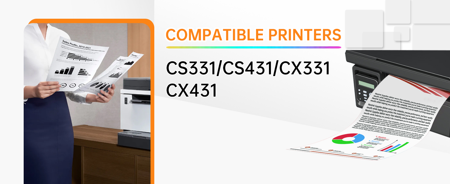 • الأجهزة المتوافقة: متوافقة مع Lexmark CS331، CS431، CX331، CX431، CS331dw، CS431dw، CX331adwe، CX431adw