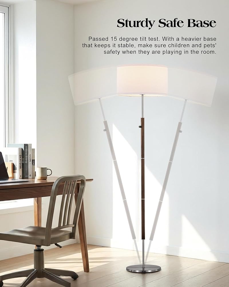 【15° Tilt Tested for Superior Stability】Safety is our top priority. The thickened metal pole and weighted 11.02" base have successfully passed the rigorous 15-degree tilt test, ensuring the lamp remains rock-solid and won't easily tip over. This "Anti-Tip" design provides exceptional peace of mind for households with active pets or children, ensuring a reliable and safe lighting experience.