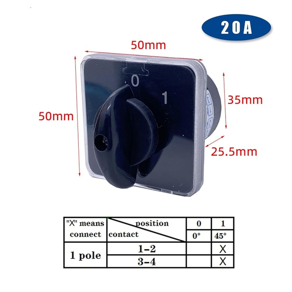 - 20A Electric Power Cut On Off Silver Contact Universal Knob Isolator Changeover Rotary Cam Switch YMZ12-20/1