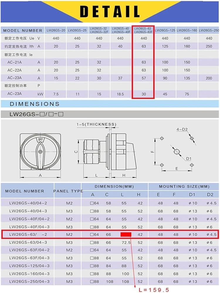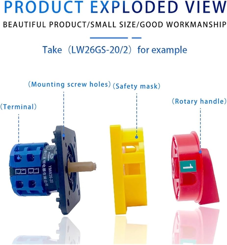 3 Position Reset Cam Switch 690V 63A 6 Poles Padlock Changeover Rotary Switches YMW26GS LW26-63/6GS