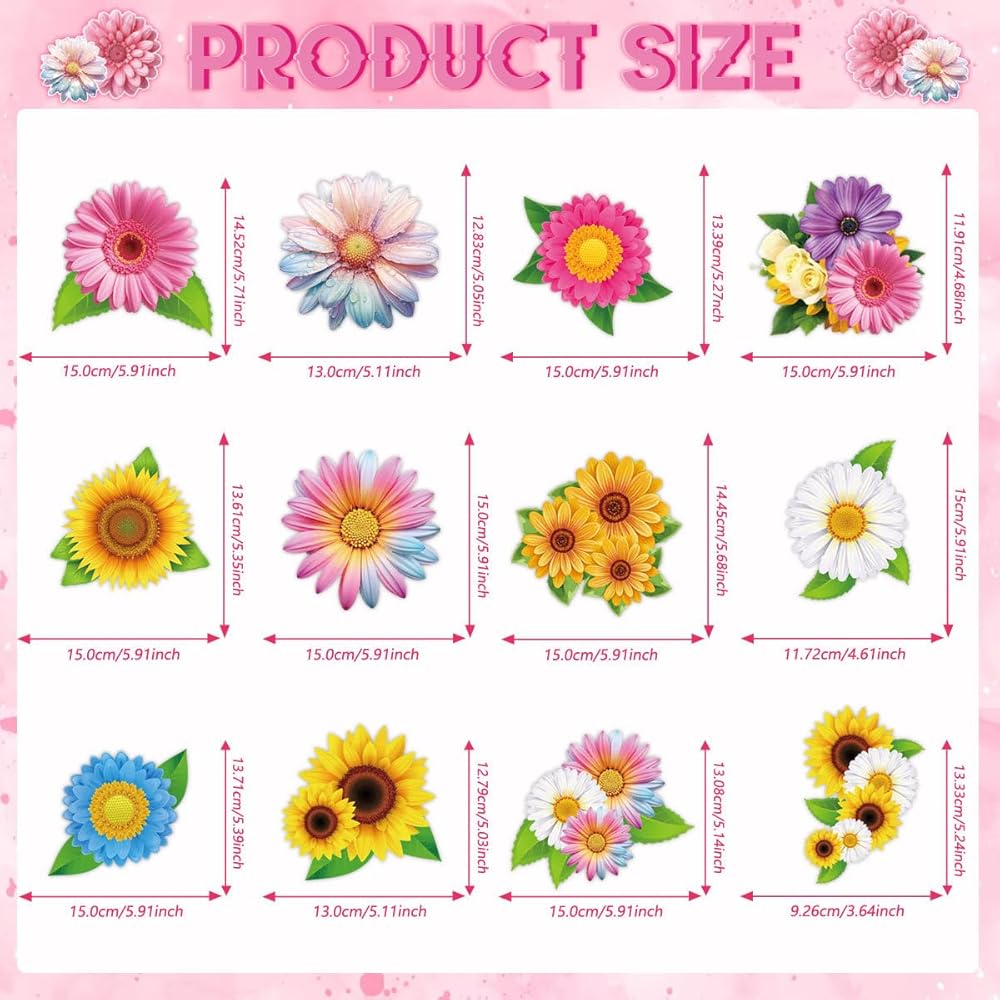 🌻 Instant Sunshine Decor: 12 vibrant sunflower cards + 12 PVC spirals create floating gardens! Perfect for baby showers, Mother's Day brunches, or summer wedding backdrops.