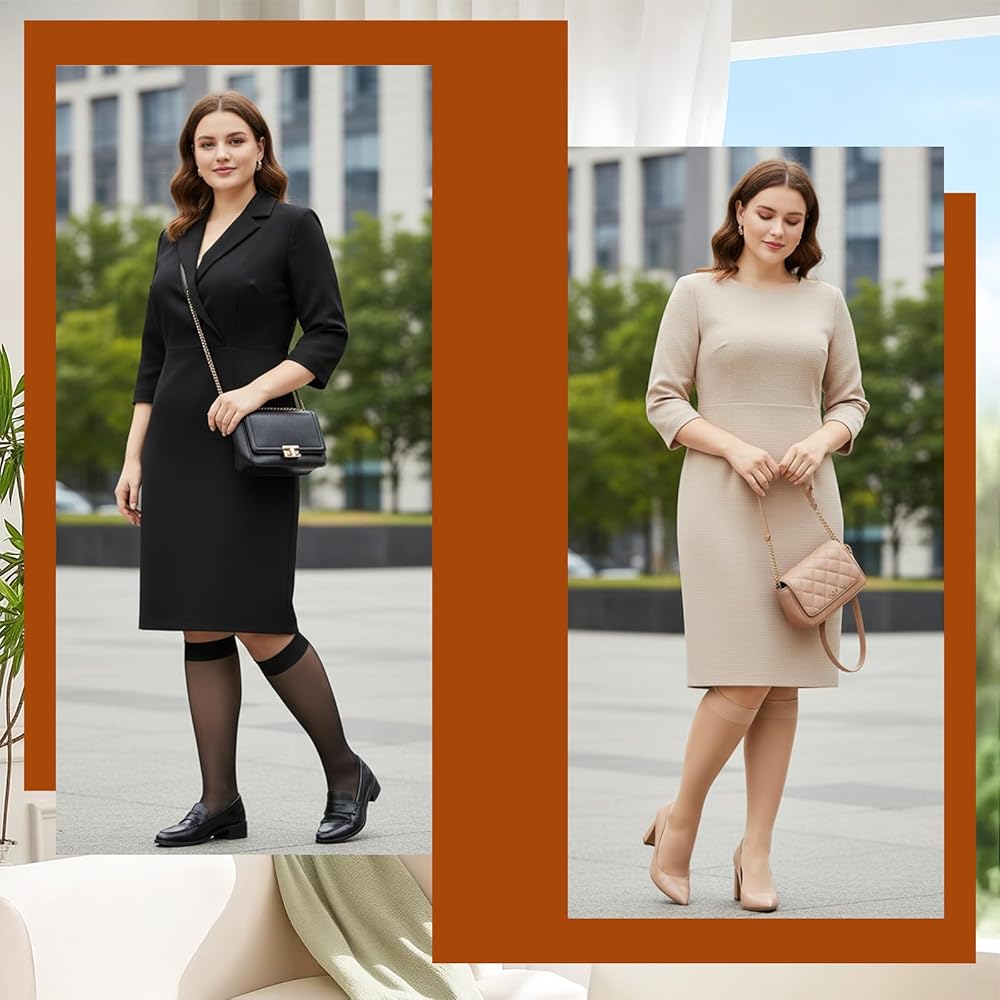 【Versatile】The knee high hose can be paired with a suit jacket or dress to show a professional and elegant image, and paired with a simple T-shirt or shirt to create a casual yet elegant style
