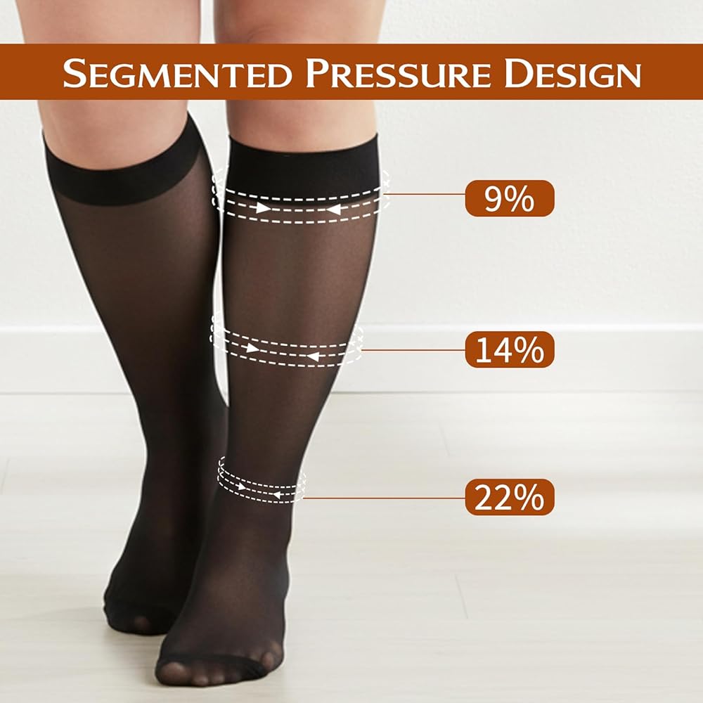 【Soft Material】Our plus size knee high socks are woven from microfiber nylon,which is very light, breathable,good elasticity, gently fits your leg curve,comfortable to wear