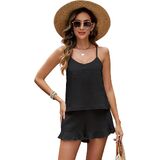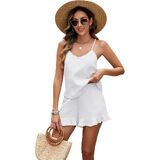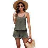 • Chic Design: Matching linen cami tops feature a solid color, sleeveless, v-neck, Y-shaped back design with adjustable spaghetti strap. The pajama shorts feature a high-waisted elastic waistband with feminine ruffle trim for effortless style. Both pieces offer relaxed coverage with subtle sophistication.