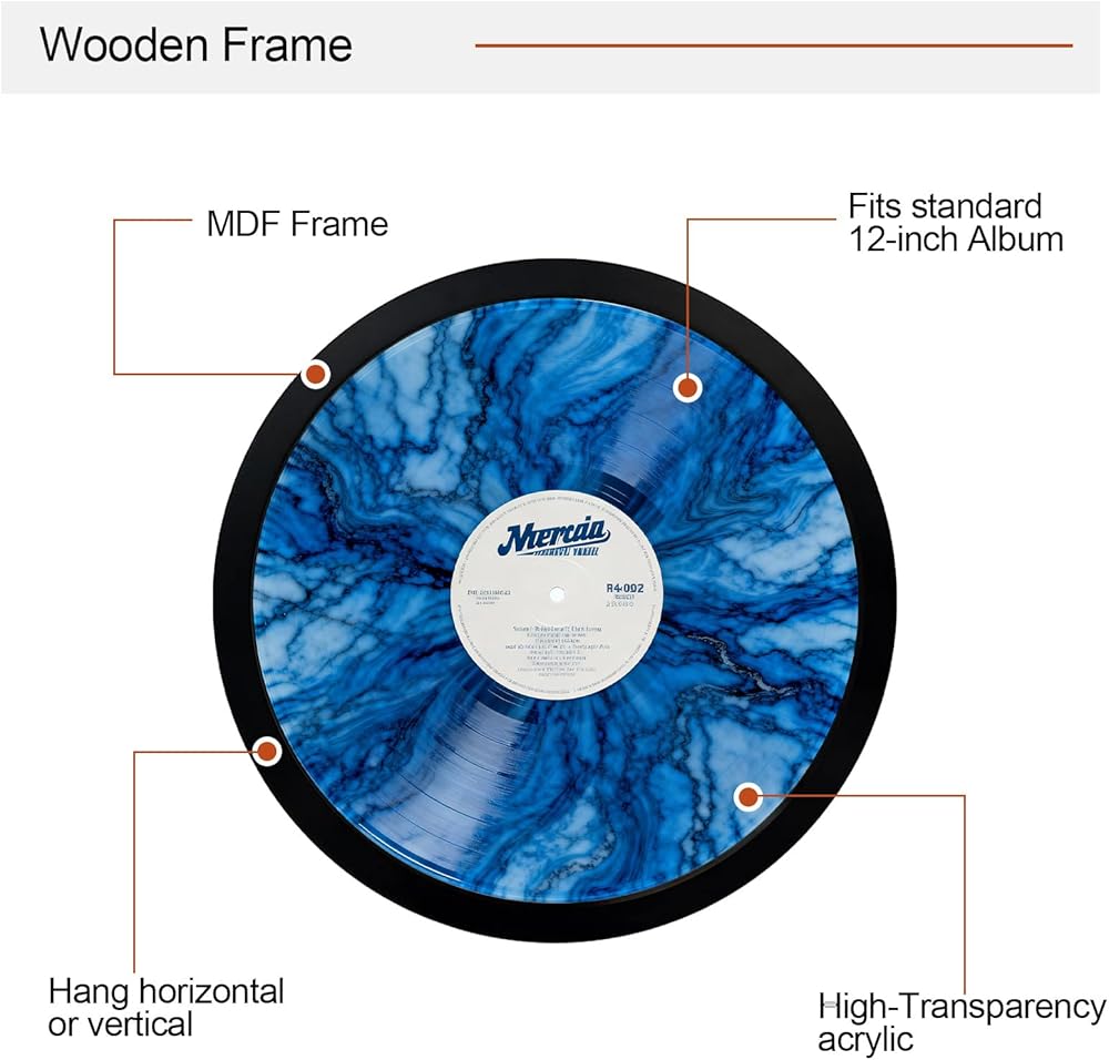 تصميم إطار MDF متين مصنوع من خشب هندسي عالي الجودة (MDF) مع واجهة أكريليك شفافة تمامًا - مما يوفر وضوح الزجاج ولكنه أكثر أمانًا ومقاوم للكسر. (تأكد من إزالة الغشاء الواقي قبل الاستخدام.) الجزء الخلفي الناعم الأسود يحافظ على الفينيل الخاص بك محميًا من الخدوش والانزلاق.