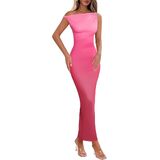 المقاس: S=US 4-6، M=US 8-10، L=US 12-14، XL=US 16-18، XXL=US 20. هذا الفستان الطويل بكتف واحد مصنوع من 95% بوليستر و5% إيلاستين، الذي يتميز بالمرونة والتهوية، مما يضمن تجربة ارتداء مريحة وغير مقيدة.
