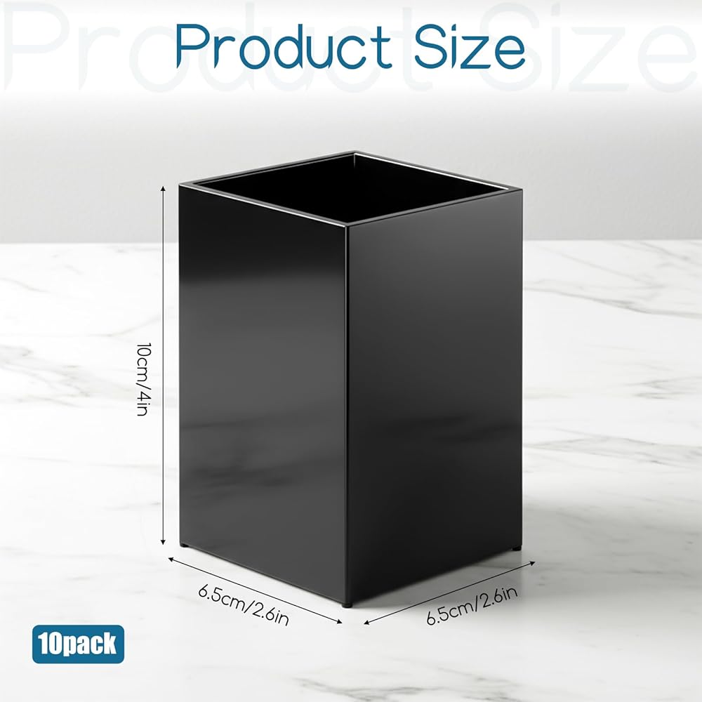 Package Contents: You will receive 10 black acrylic pen holders, each measuring 2.6 x 2.6 x 4 in / 6.5 x 6.5 x 10 cm. These desk pen holders are sufficient for your daily use and replacement needs, and are also great for sharing
