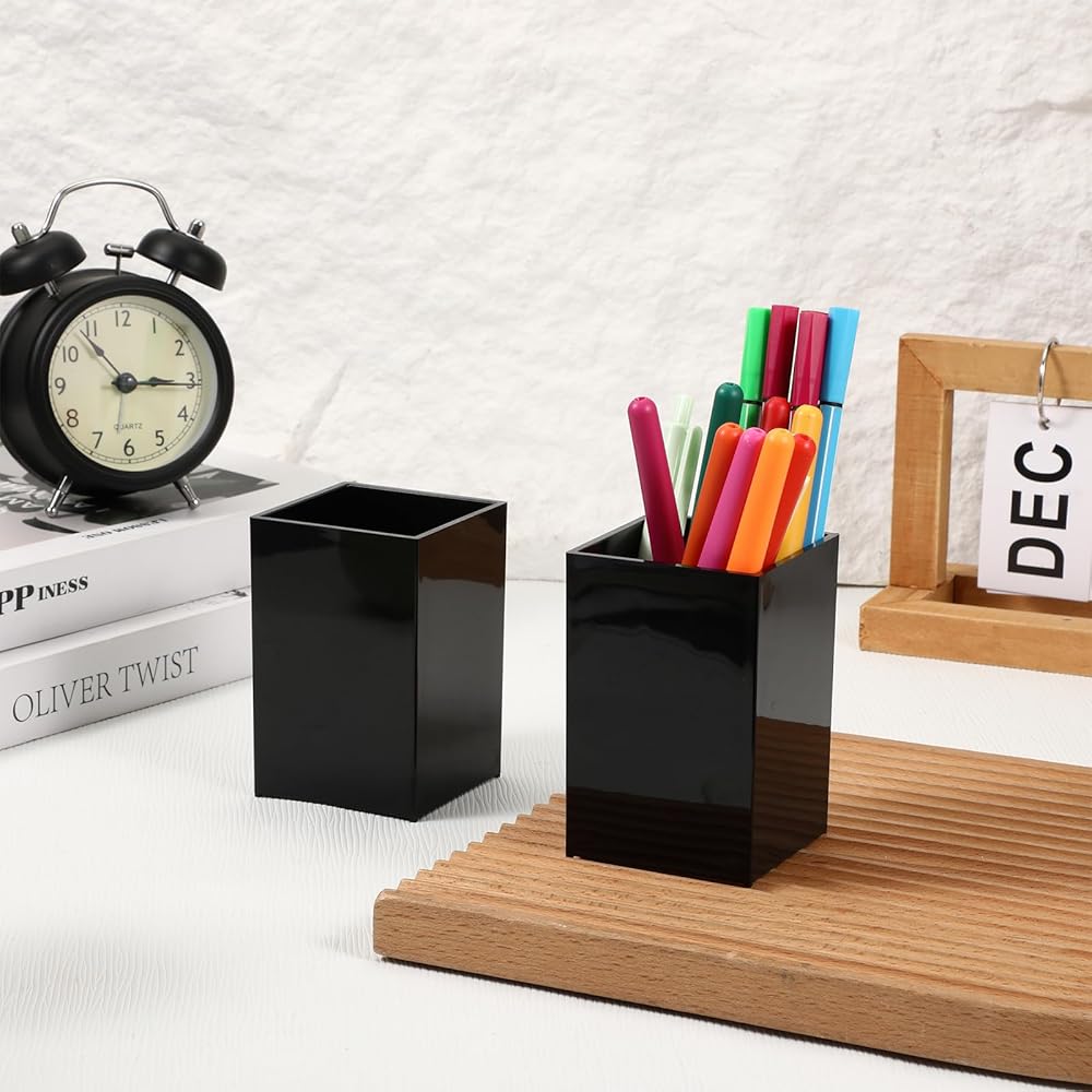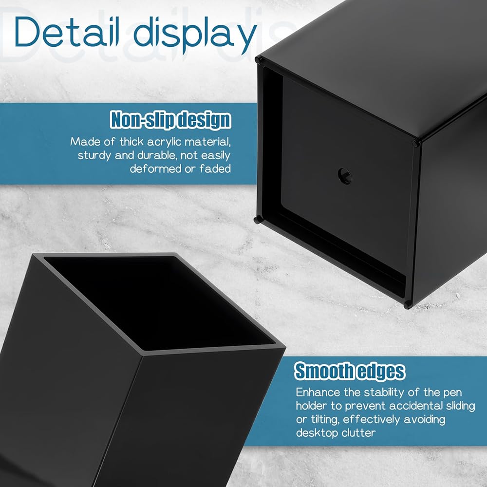 Premium Material: The black pen holders for desks are made of high-quality acrylic, which is thick and sturdy, resists fading or warping, and is durable. The acrylic pen holders are easy to clean and can be reused multiple times