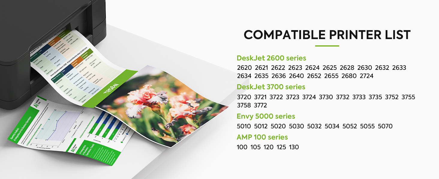 متوافقة مع خراطيش الحبر HP Envy 5055 وسلسلة 5000: 5010، 5012، 5020، 5030، 5032، 5034، 5052، 5055، 5070