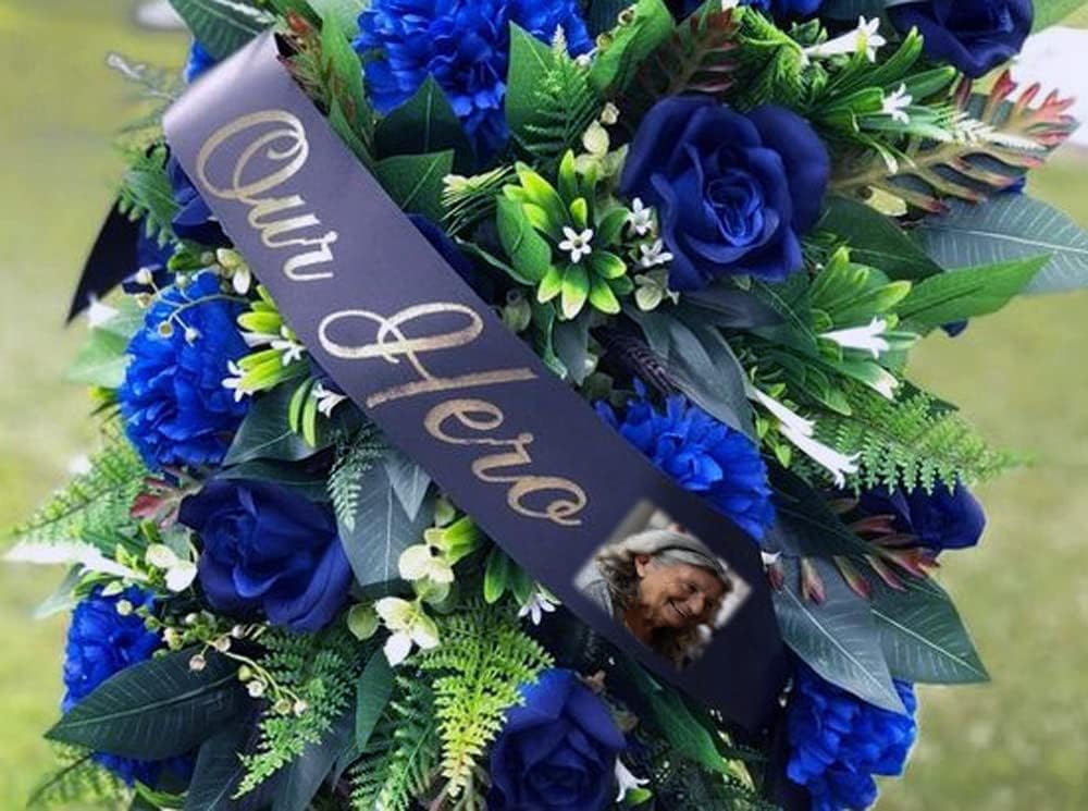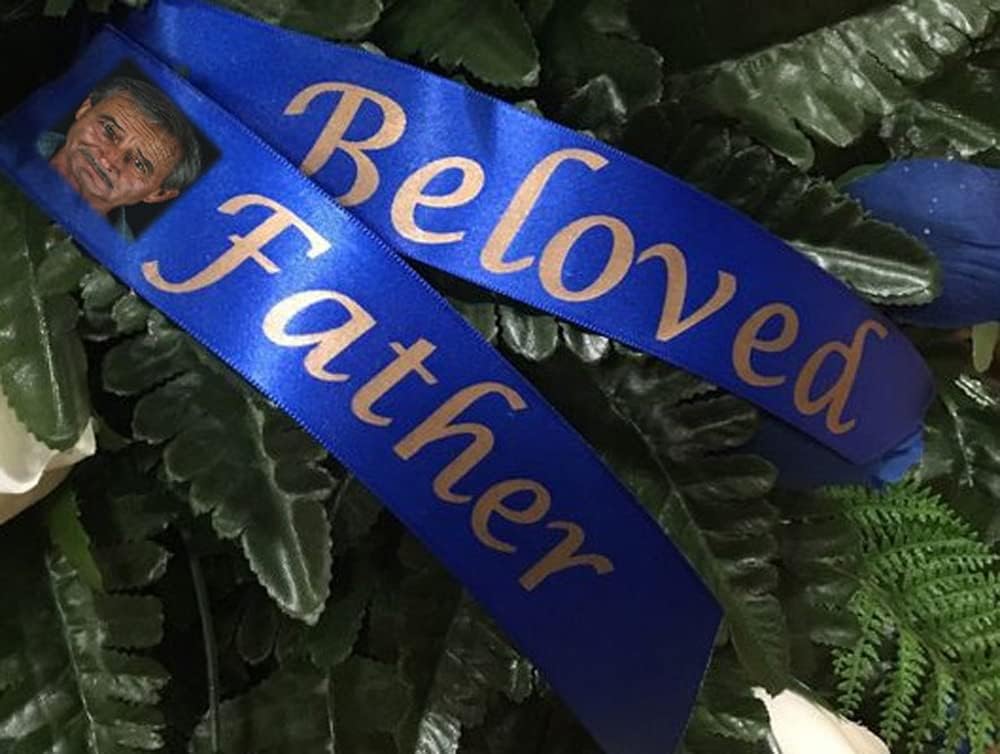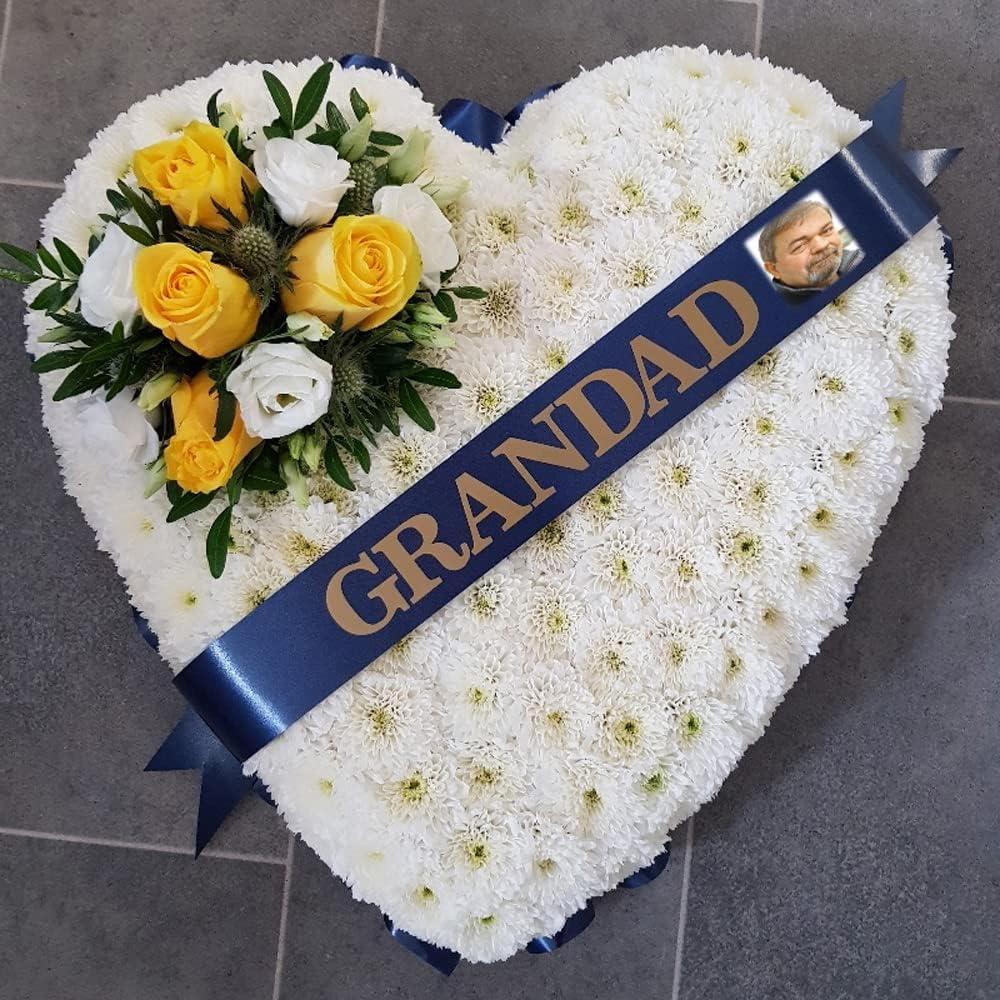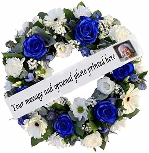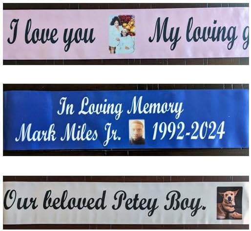 شريط جنازة تذكاري مخصص ومطبوع حسب الطلب مع إكليل صور اختياري غير متضمن بطول 5 أقدام